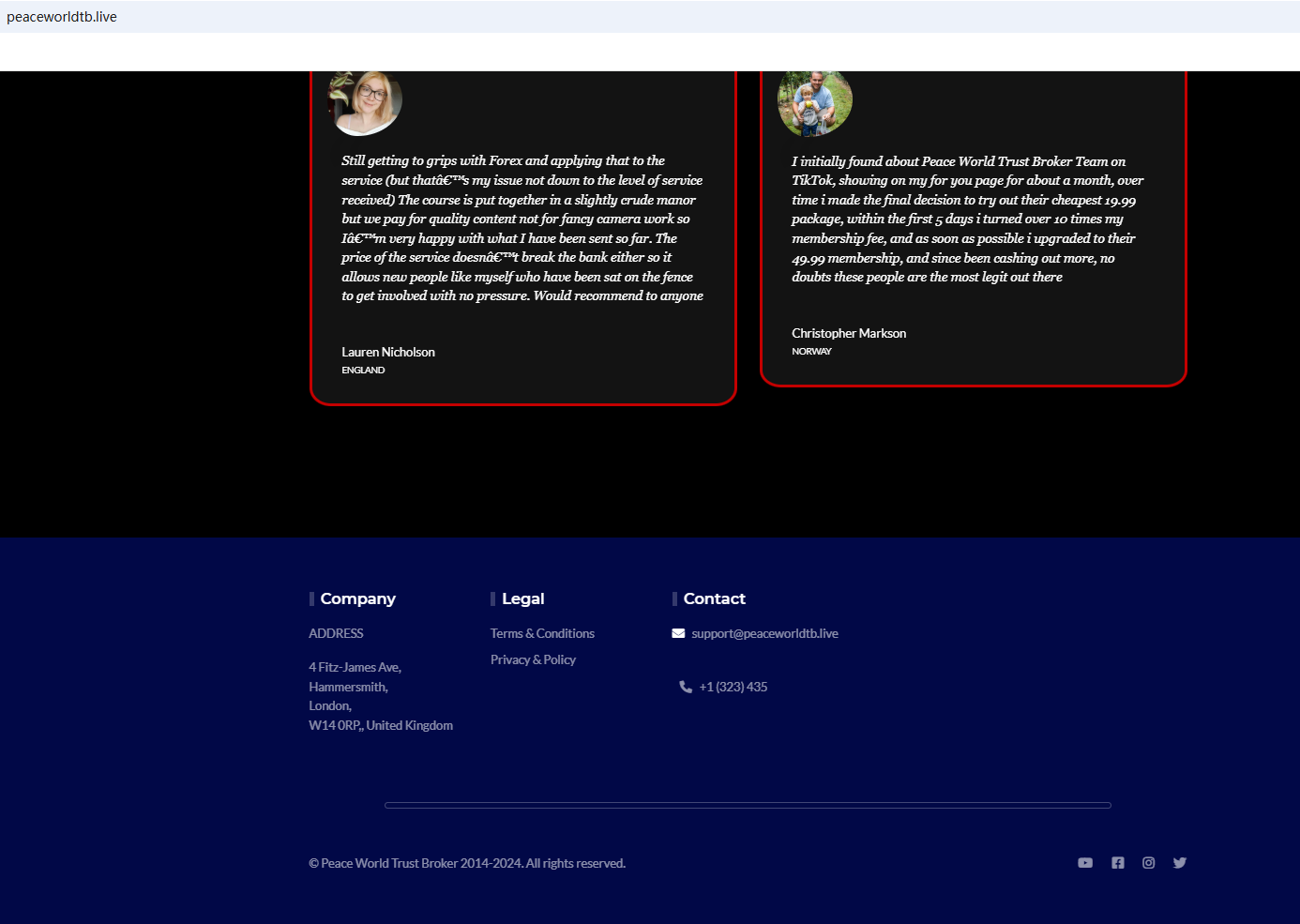BrokersView found that the domain "https://peaceworldtb.live/" is currently inaccessible. This is widely regarded as a significant red flag, as the suspension of a broker's website often points to underlying regulatory or operational issues.