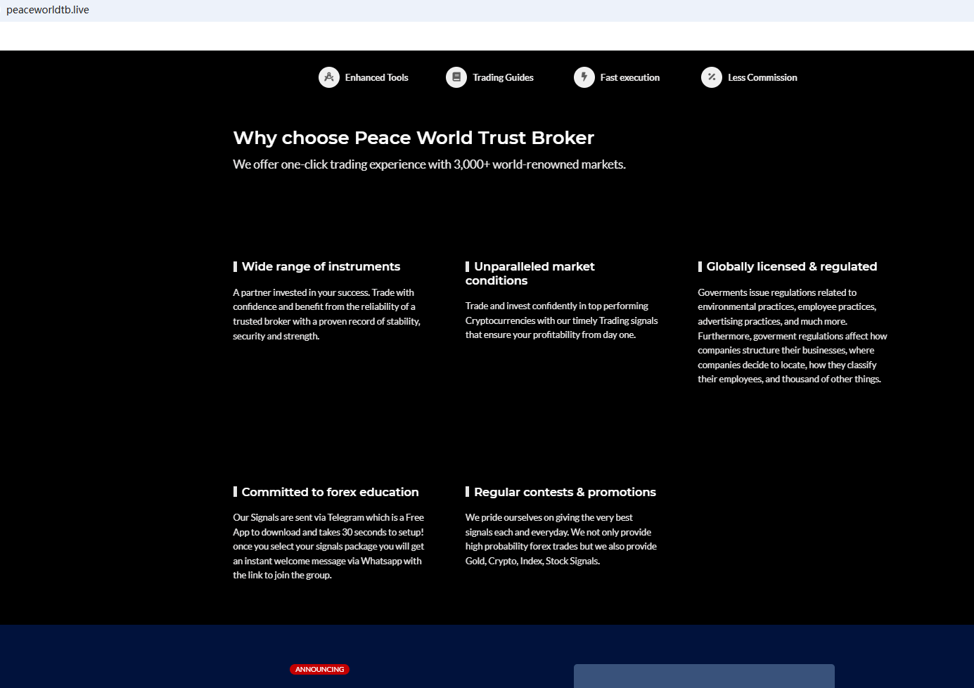 PEACE WORLD TRUST BROKER appears to be a scam.