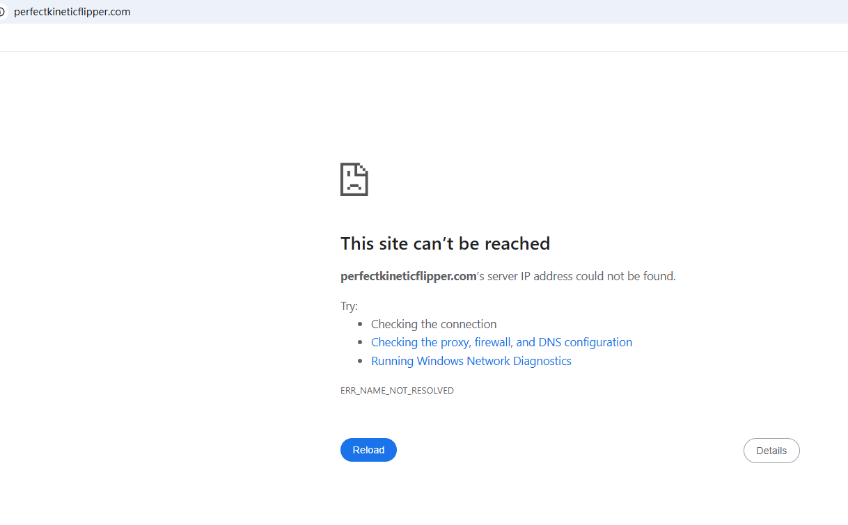 BrokersView found that the domain "https://perfectkineticflipper.com/" is currently inaccessible. This is widely regarded as a significant red flag, as the suspension of a broker's website often points to underlying regulatory or operational issues.