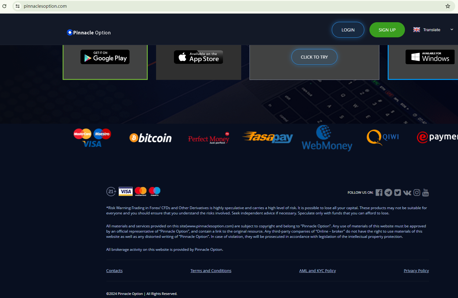 BrokersView found that the domain "https://www.pinnaclesoption.com/" is currently inaccessible. This is widely regarded as a significant red flag, as the suspension of a broker's website often points to underlying regulatory or operational issues.