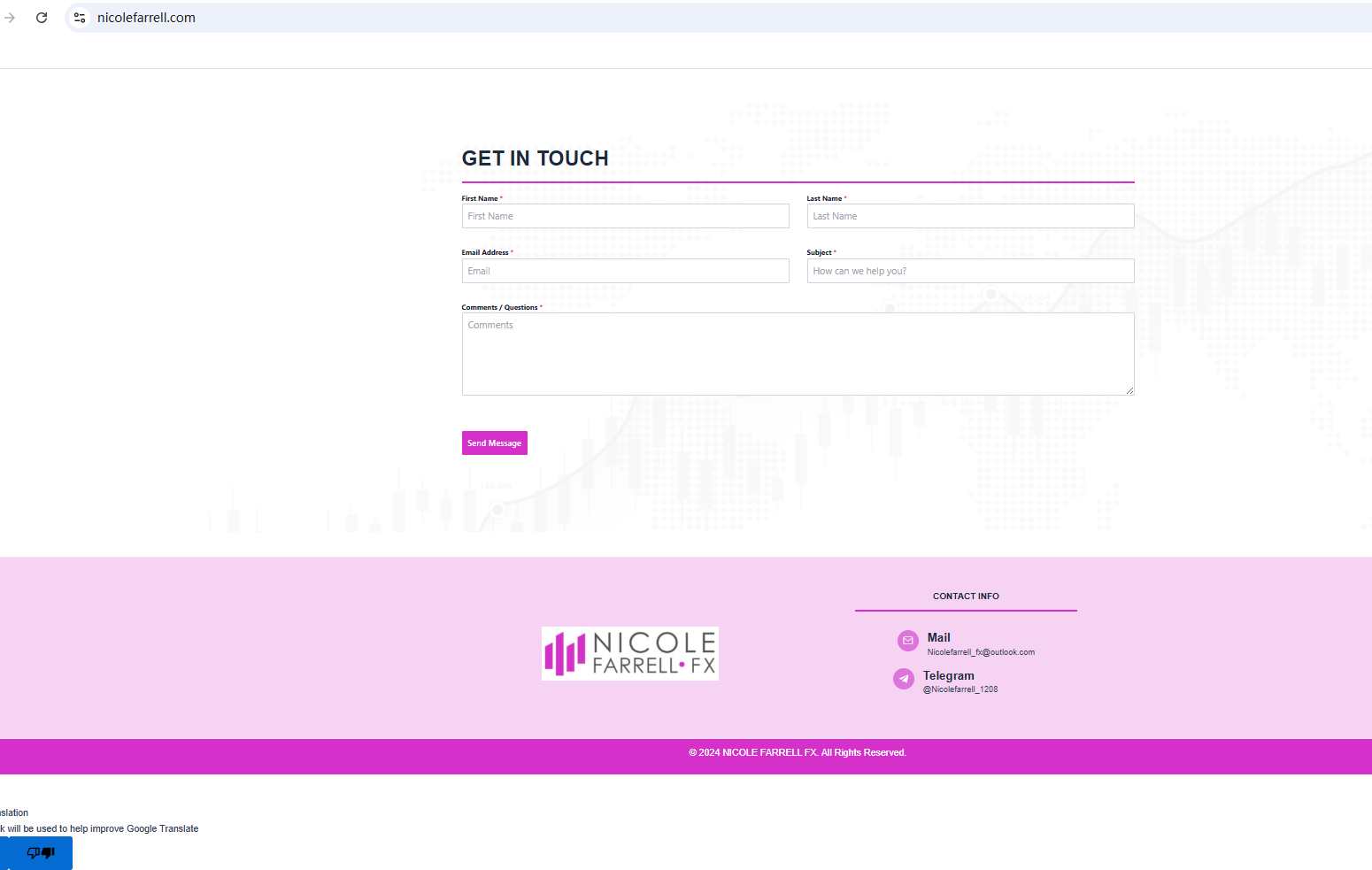 In essence, NICOLE FARRELL FX is not regulated by any governing body. Entrusting it with investors' funds is highly risky, as there are no legal protections in place to safeguard the funds. NICOLE FARRELL FX appears to be a scam.