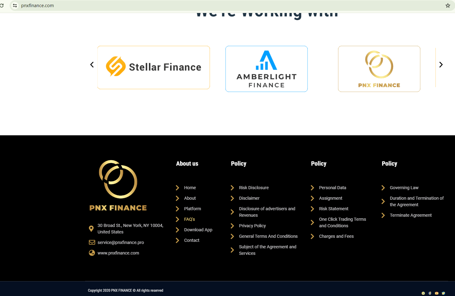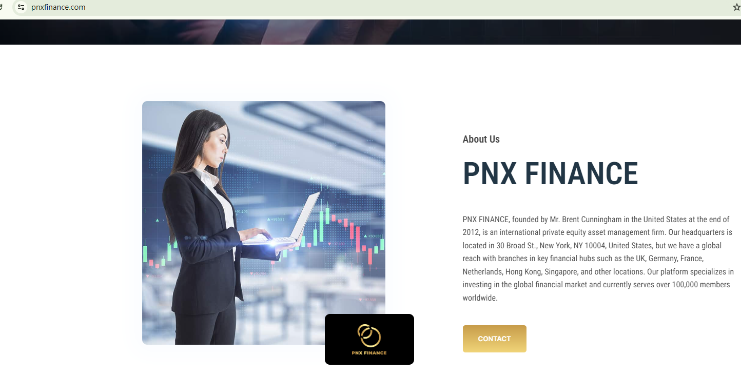 PNX FINANCE claims to be headquartered in the US and have a global reach with branches in key financial hubs. However, this platform does not provide any specific information regarding its regulatory status in these countries and regions. This lack of transparency raises concerns and suggests a potential fraud scheme.