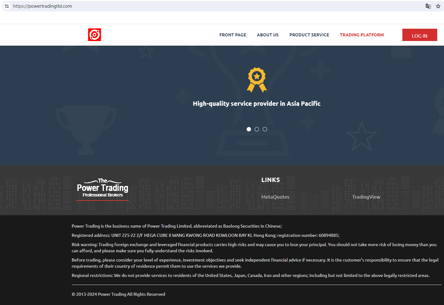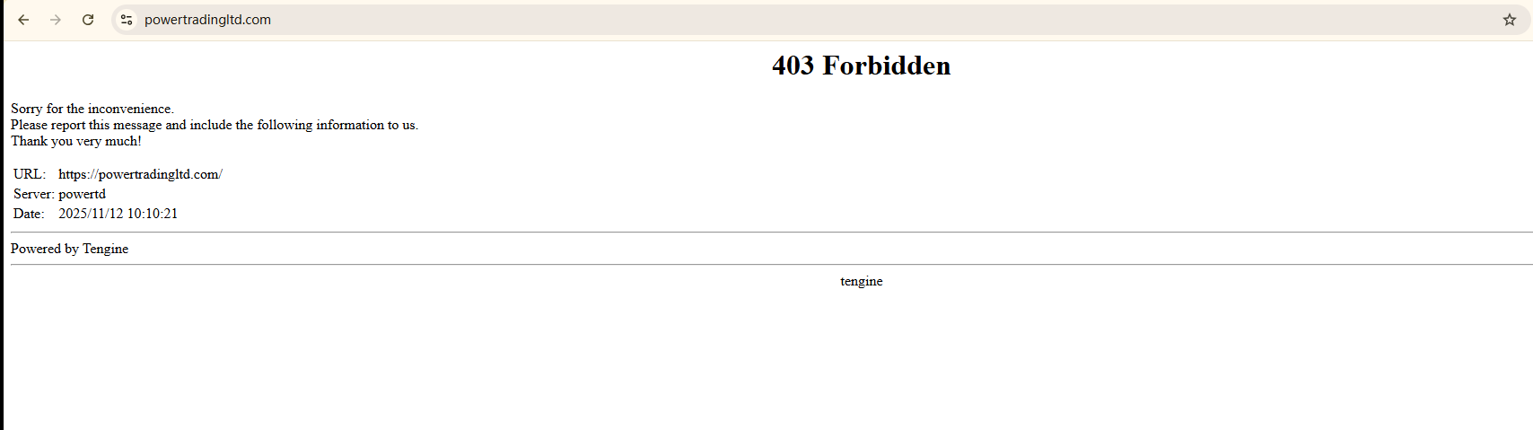 BrokersView found that the domain "https://powertradingltd.com/" is currently inaccessible. This is widely regarded as a significant red flag, as the suspension of a broker's website often points to underlying regulatory or operational issues.