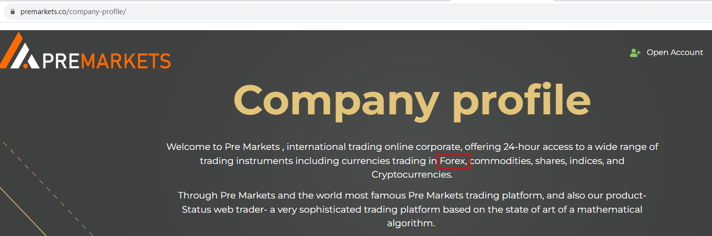 Pre Markets claims to be a reliable company without presenting any information about its regulation or contact. The lack of such important information may be a distinct signal of an unlicensed broker, as regulated companies always present their accreditations and licenses in a prominent position. It is a red flag.
