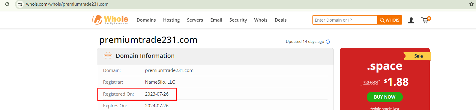 Furthermore, the domain name, premiumtrade231.com, was only created in July 2023. This recent establishment contradicts its claims of a longstanding reputation and achievements.