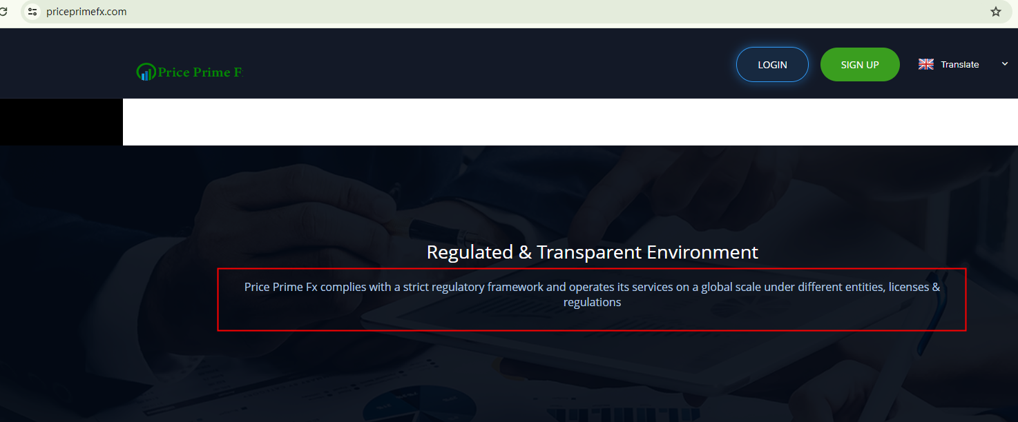 Price Prime Fx claims to be regulated, but it doesn't provide any specific information regarding its regulatory status. The absence of regulatory oversight is a red flag.