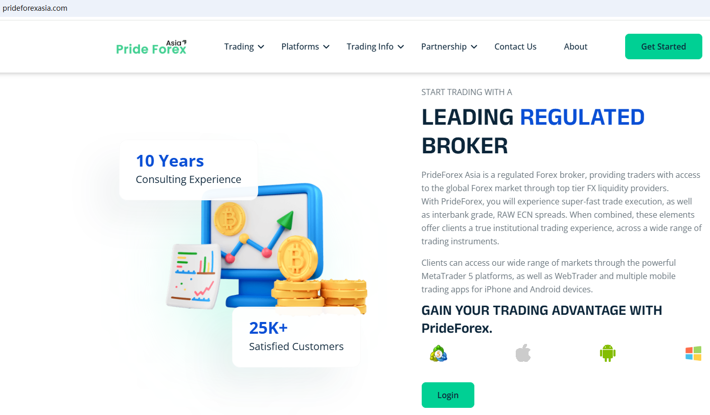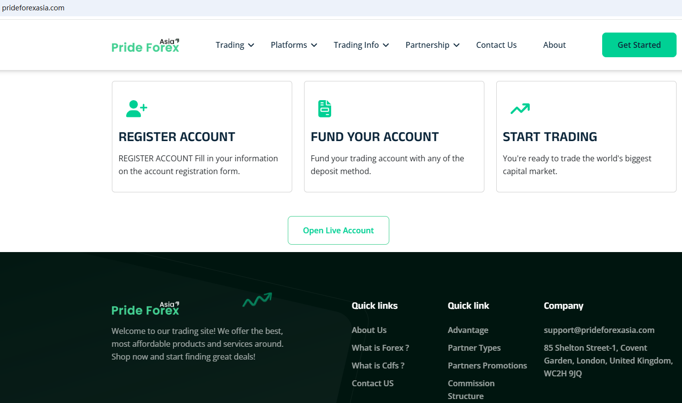 PrideForex claims to be a regulated Forex broker located in the United Kingdom,offering a range of investment products to traders, including Cryptocurrencies, Spot Metals, Forex, Spot Indices, Commodities, Futures and more instruments for trading in global markets. But it lacks detailed regulatory information. A company that offers financial services must have financial license in the country where it is located.