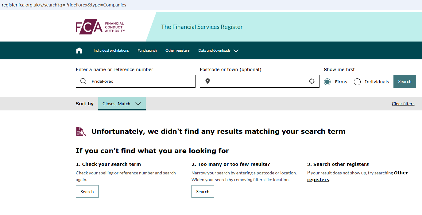 Upon investigation, we found that PrideForex is not regulated by the United Kingdom Financial Conduct Authority (FCA).