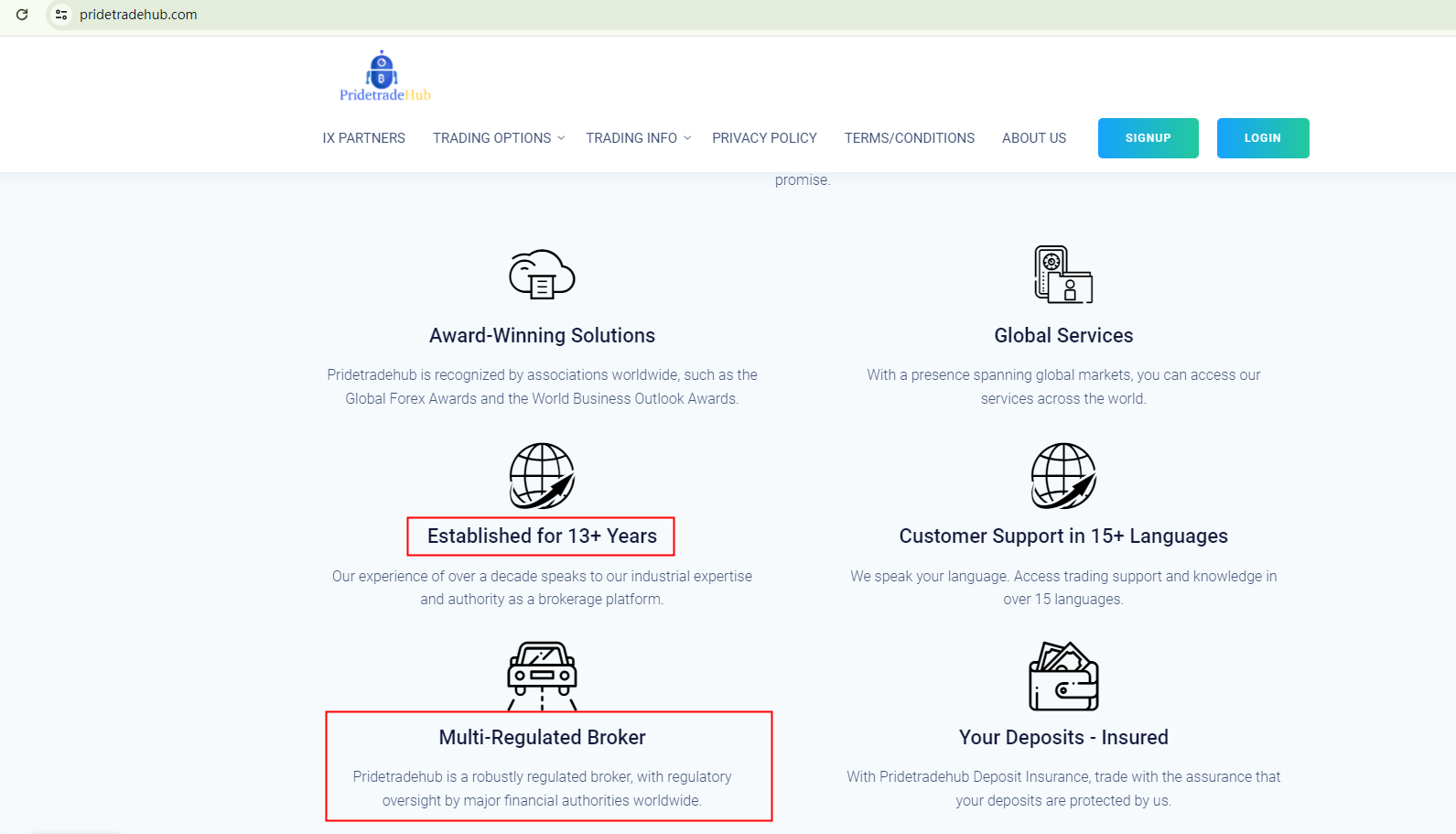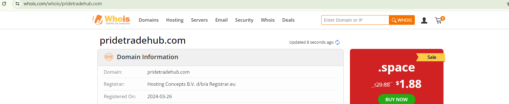 PRIDETRADEHUB asserts a business history of 13 years. However, the recent registration of this brand's domain name in late March 2024 contradicts its claim of being an established entity, casting a shadow of doubt over the broker's credibility.