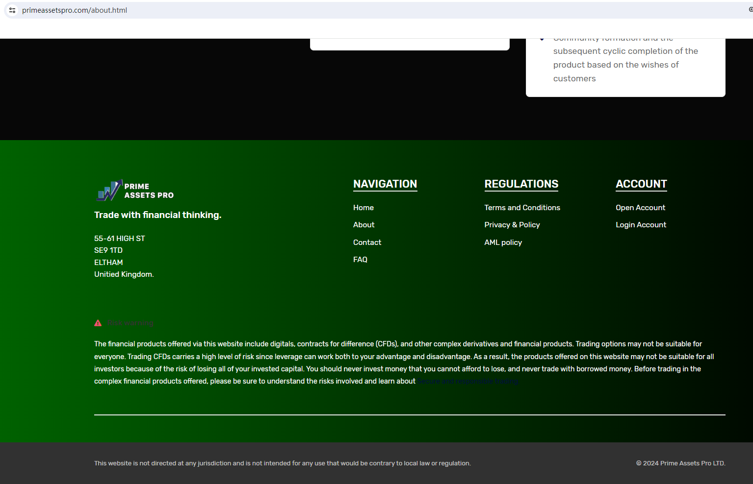 Scam websites often exhibit certain common traits. They typically have short lifespans, disappearing as soon as their fraudulent activities are discovered, only to reappear under a different brand and web address. These sites are frequently hastily assembled, with fraudsters commonly utilizing basic forex broker website templates to facilitate their scams. They simply replace the existing brand name in the content with their own, often neglecting to ensure grammatical accuracy or logical consistency. PRIME ASSETS PRO is a prime example of such group scammers. It utilizes the same website template as REAL INVESTMENT LTD (https://www.brokersview.com/brokers/real-investment-ltd), a scam previously exposed by BrokersView.