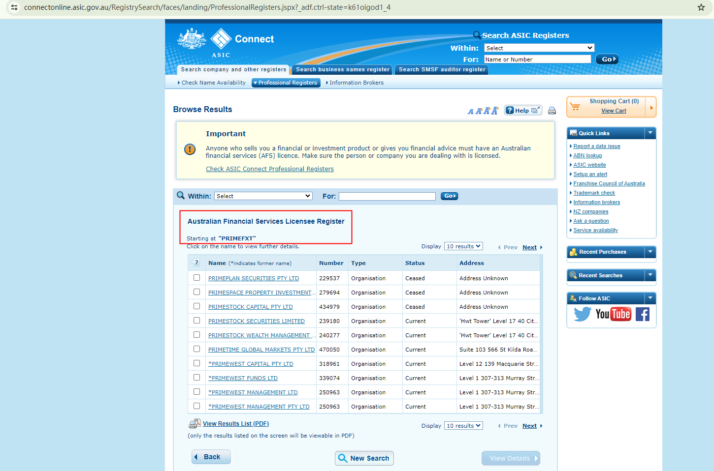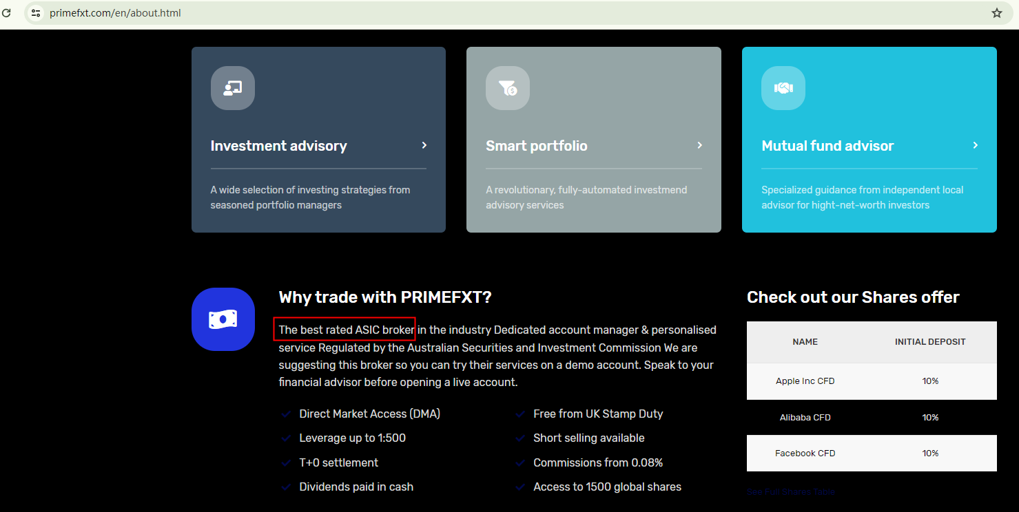 PRIMEFXT presents itself as a best broker supervised by the Australian Securities and Exchange Commission (ASIC). However, the ASIC register doesn't include any records of this company, casting doubt on its claim.