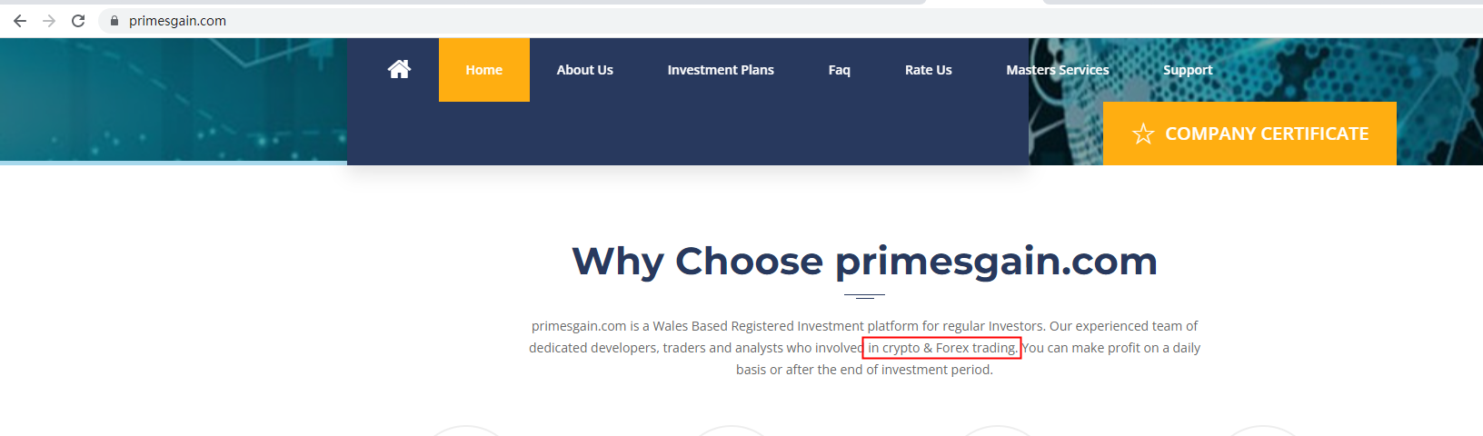 The truth is that primesgain.com is not regulated by any regulators. Letting it hold or control investors' money is unsafe, and the money can not be protected by any laws.