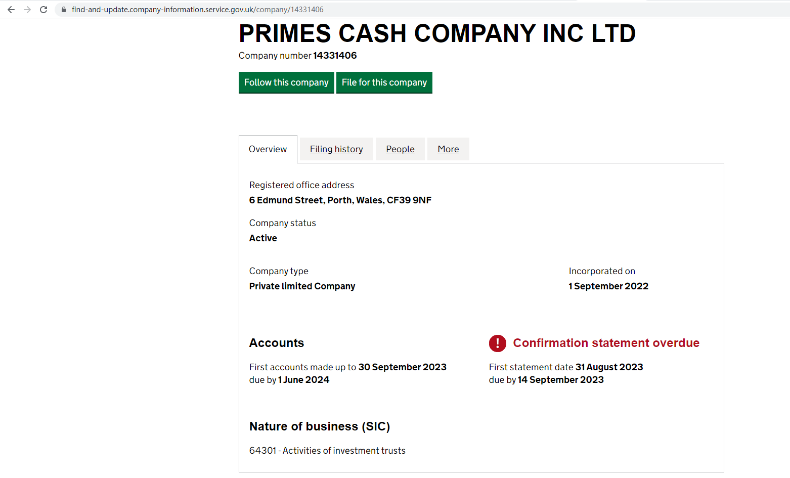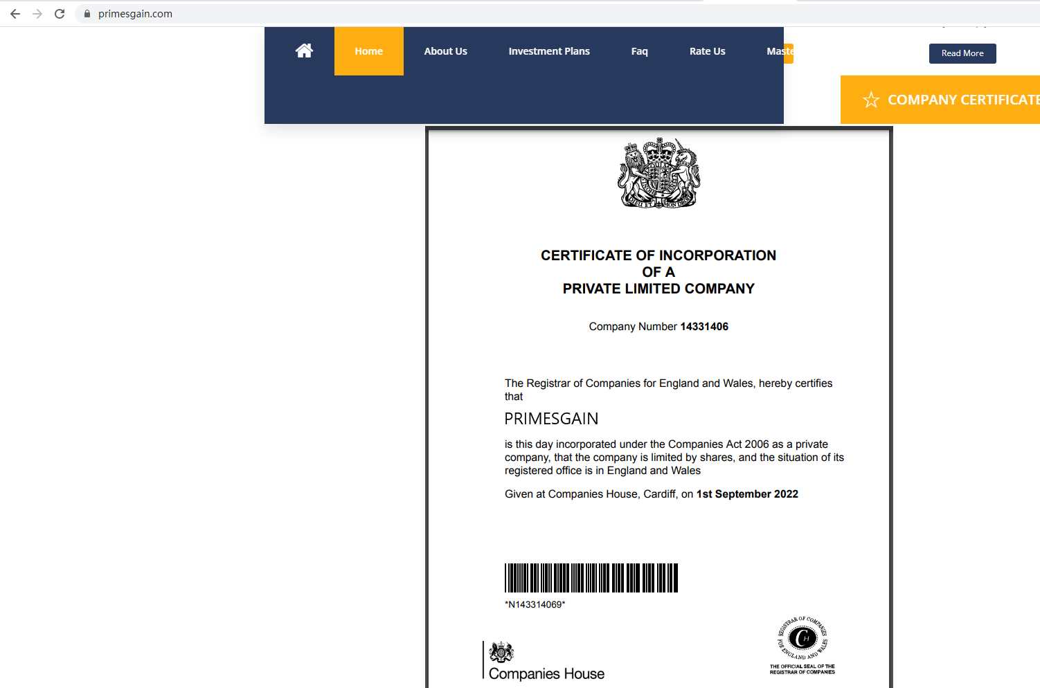 primesgain.com claims to be registered in the UK Companies House, we searched it and found a matching result. But having registration does not mean being authorized to provide financial services. We searched the UK Financial Conduct Authority (FCA) and found it was unauthorised. It is a red flag.