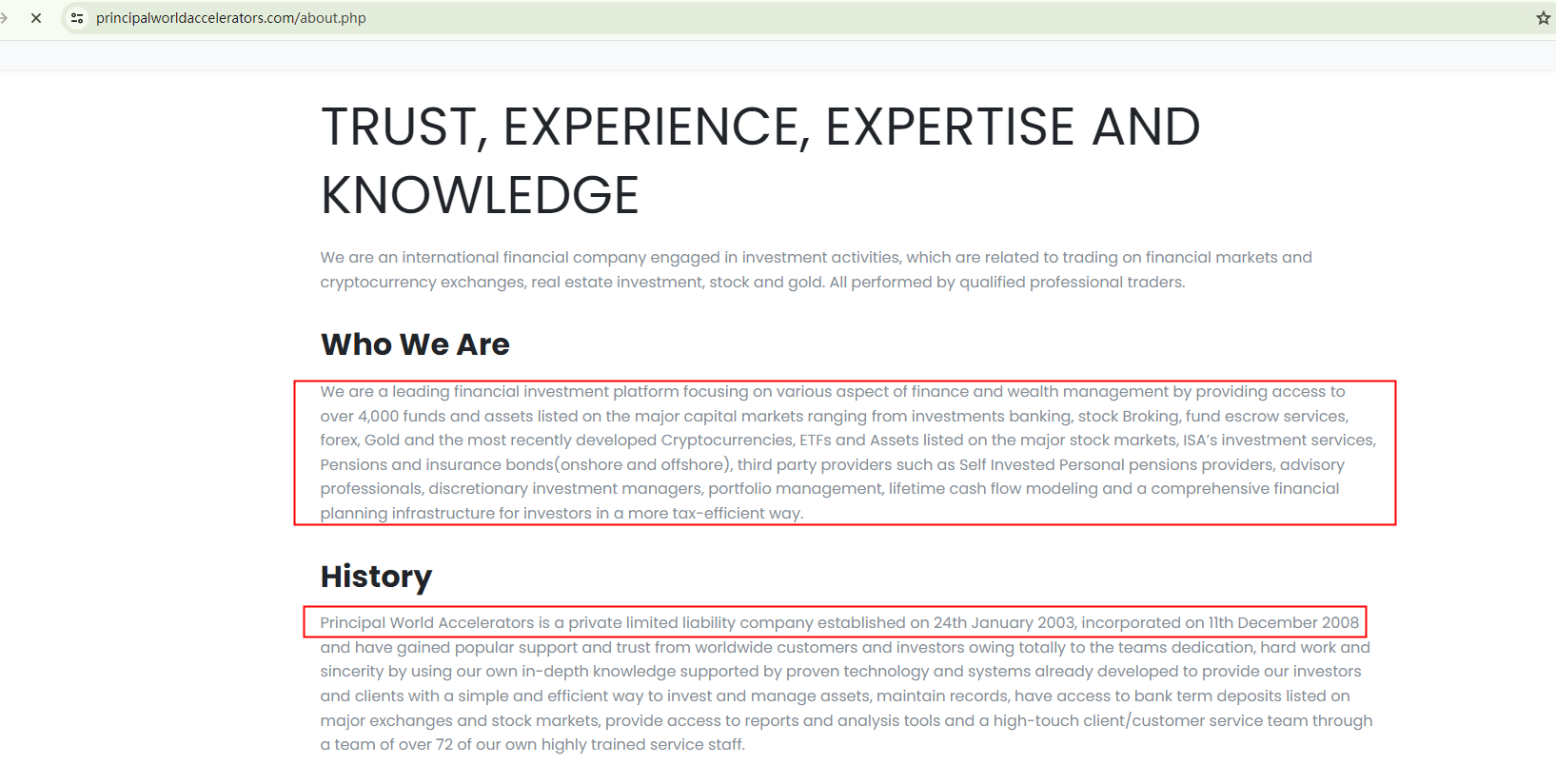 In essence, Principal World Accelerators is not regulated by any governing body. Entrusting it with investors' funds is highly risky, as there are no legal protections in place to safeguard the funds.