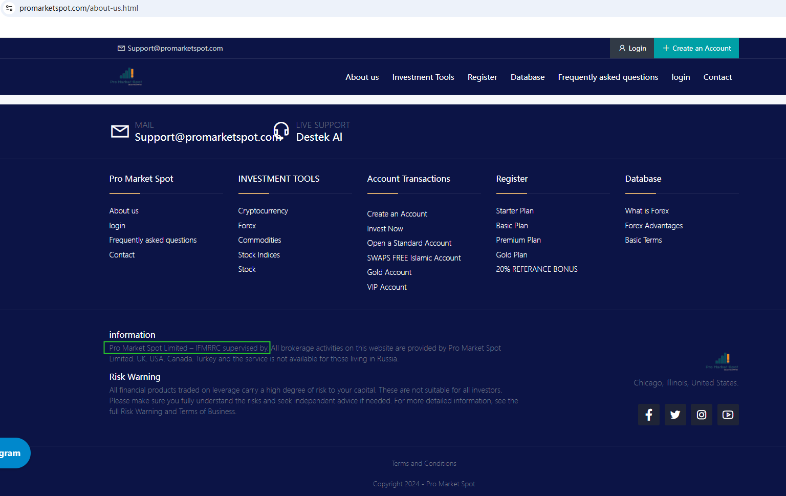 In essence, Pro Market Spot is not regulated by any governing body. Entrusting it with investors' funds is highly risky, as no legal protections are in place to safeguard the funds.
