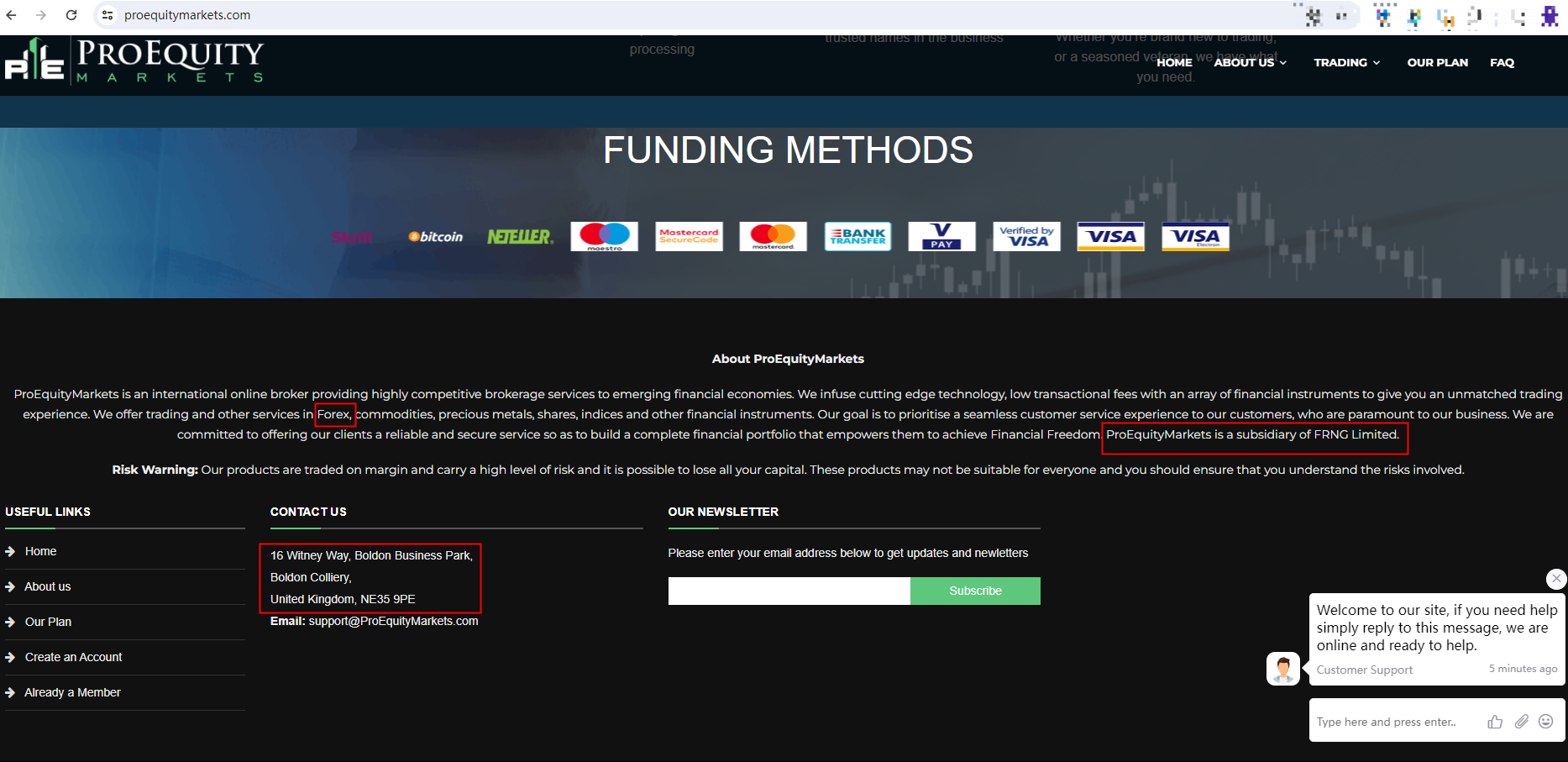 There is no any regulatory information on its website, it claims to be a subsidiary of FRNG Limited and locates in the U.K, but we don't find any results on the U.K Financial Conduct Authority (FCA) matching to ProEquityMarkets/FRNG.