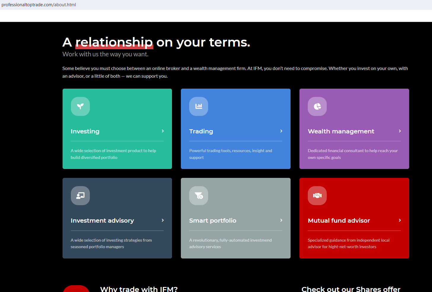 According to its website, we can find that this scam website uses a website template commonly used by fake traders. This template comes with fixed content and icon design. However, this careless scammer did not seriously replace the content involving the dealer's name with his own brand name, which further proves that this website was probably built in a hurry to deal with and attract unsuspecting investors.