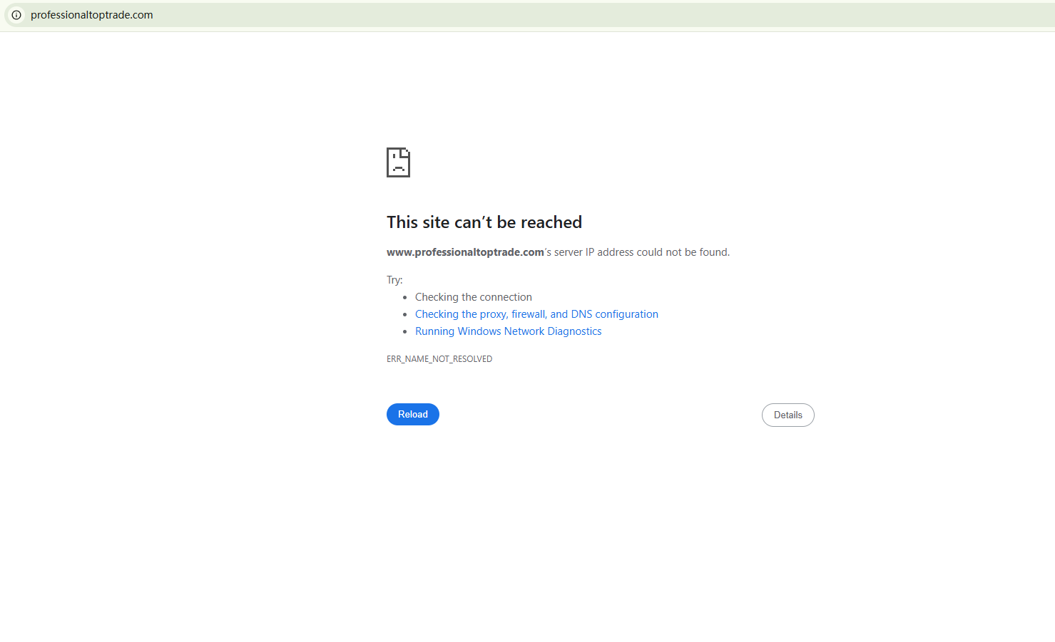 BrokersView found that the domain "https://www.professionaltoptrade.com/" is currently inaccessible. This is widely regarded as a significant red flag, as the suspension of a broker's website often points to underlying regulatory or operational issues.