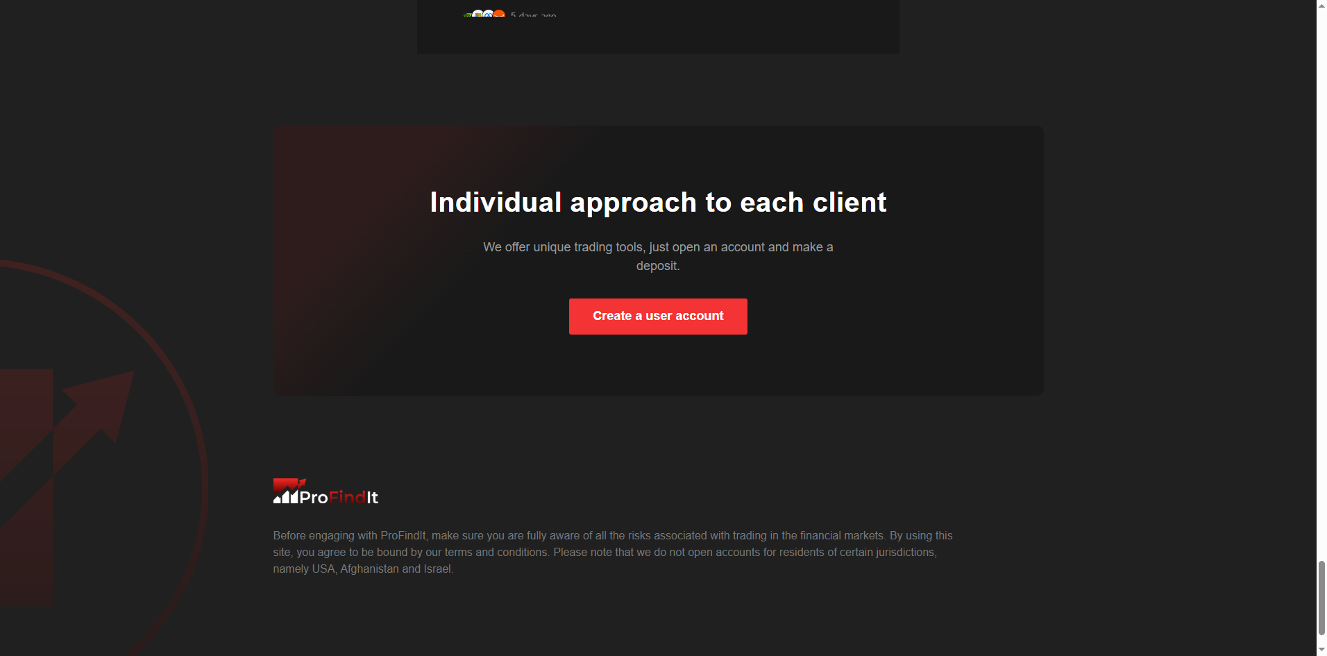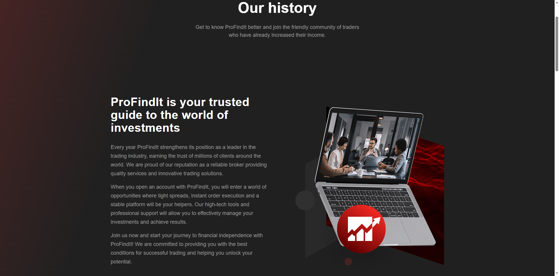 ProFindIt does not appear to be a legitimate platform, as it seems to operate without any regulatory oversight. The website provides no information about financial regulation, and notably, it does not display even basic contact details such as a phone number or registered address. This lack of transparency is a major red flag and a common trait among fraudulent platforms aiming to avoid detection and accountability. Given these serious concerns, ProFindIt appears to be a fraud.
