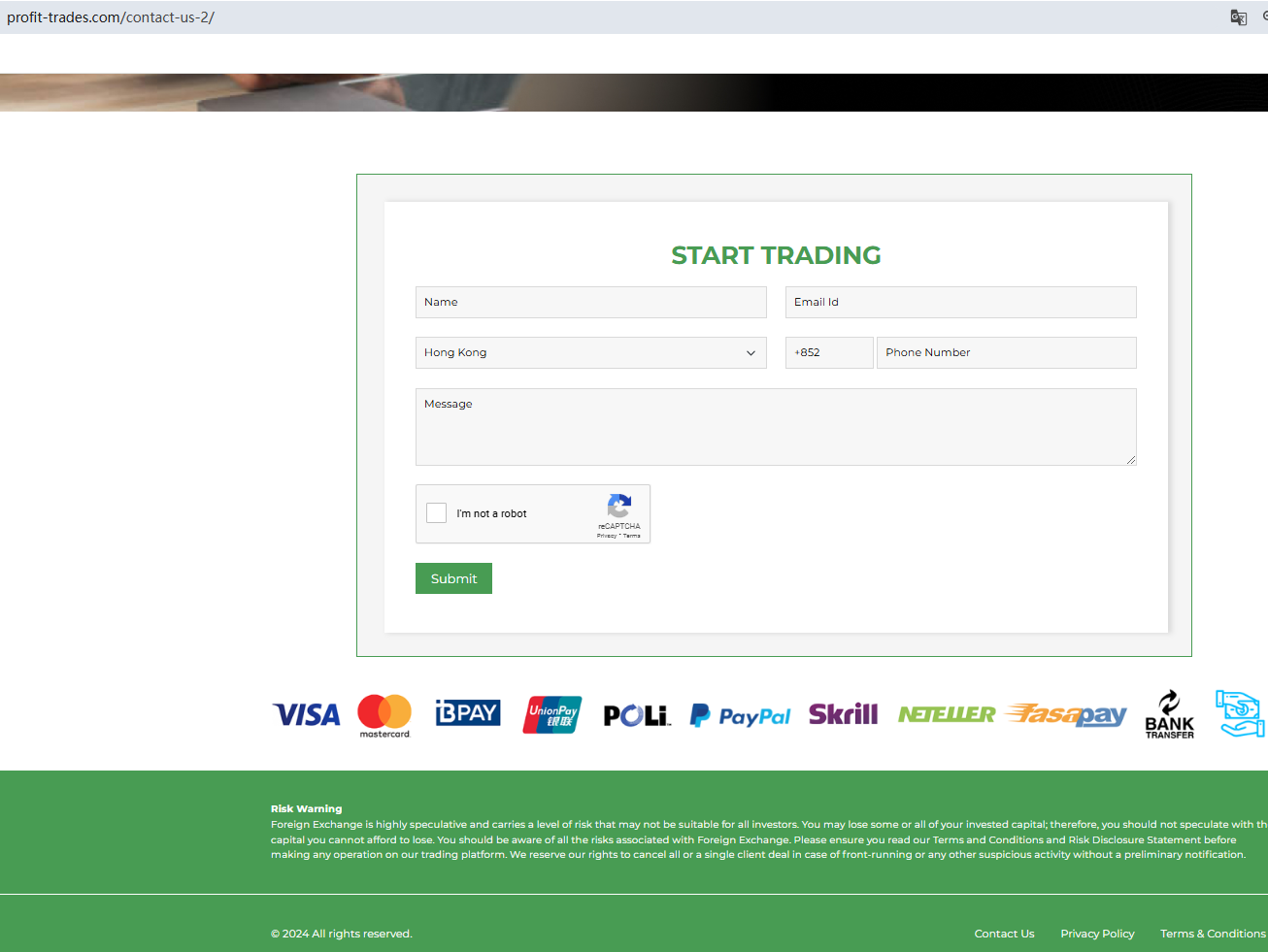 In essence, Profit Trades is not regulated by any governing body. Entrusting it with investors' funds is highly risky, as there are no legal protections in place to safeguard the funds.