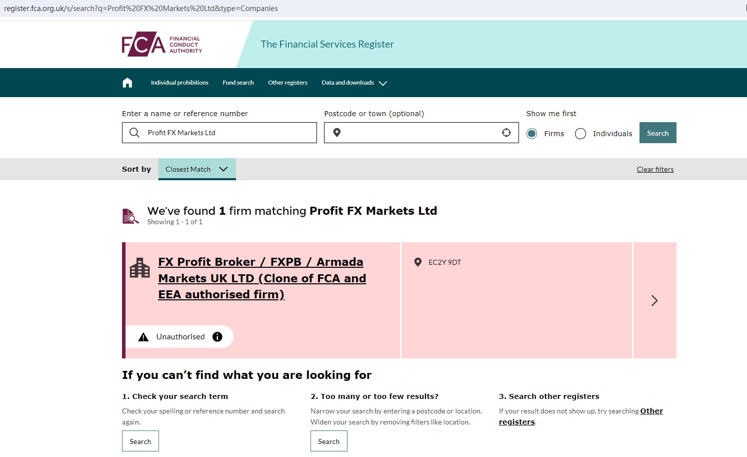 Upon investigation, we found that ProfitFX is not authorized by the United Kingdom Financial Conduct Authority (FCA).