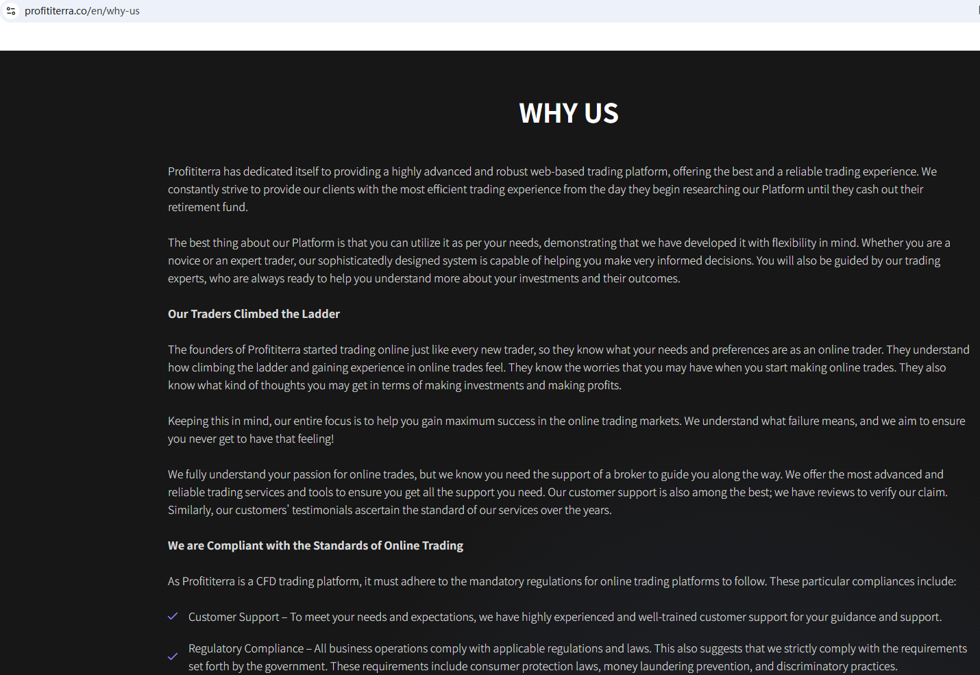 Profititerra is not regulated, which means there are no legal protections for the funds of investors. It appears that Profititerra may be a scam.
