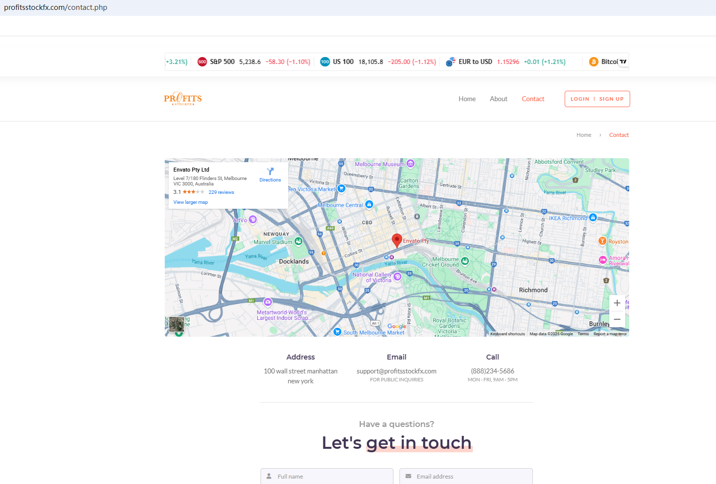 According to its website, it claims to be a reliable company, with three addresses listed on the website: Australia, New York, and the United Kingdom. Upon investigation, no matching information was found in the Australia Securities & Investment Commission (ASIC) and National Futures Association (NFA). What's more, the Financial Conduct Authority (FCA) issued a warning against PROFITS STOCK FX, believing this company might be providing financial services or products without proper authorization in the UK.