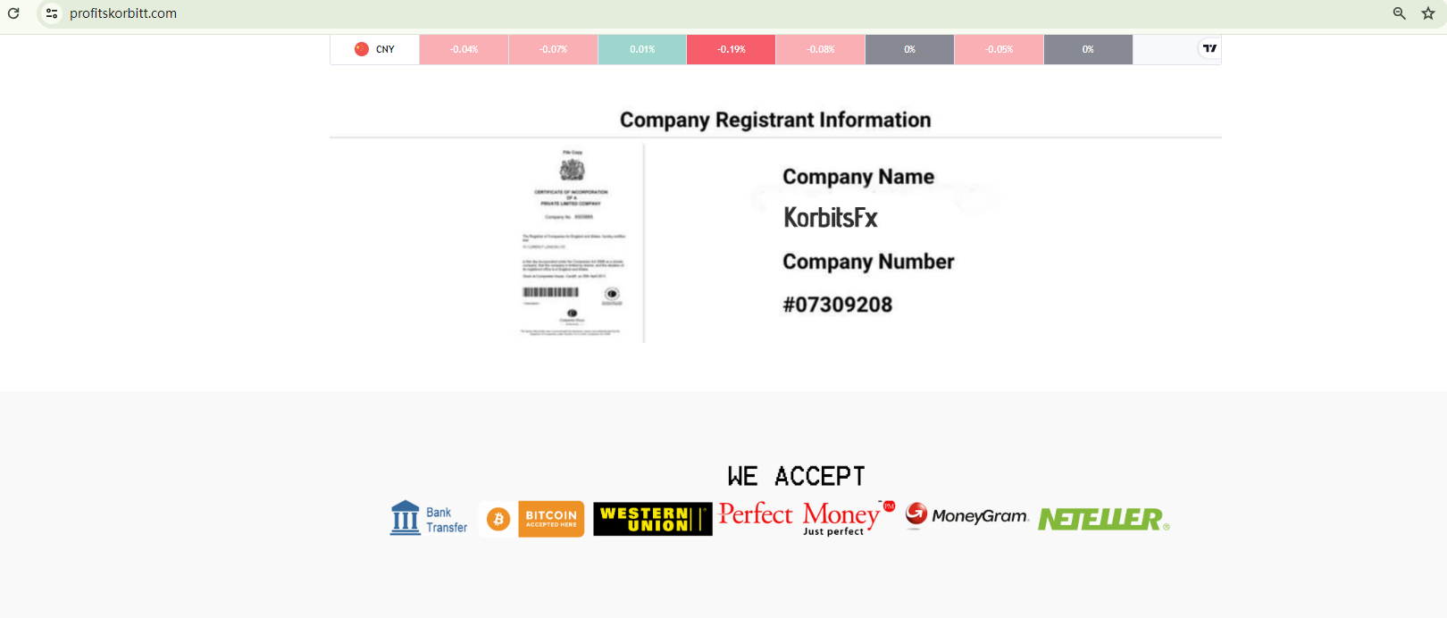The website of Profitskorbitt appears to be identical to that of Marketforetrading, an unregulated broker that has previously been flagged by BrokersView. Intriguingly, they even share the same alleged physical US address and the purported registration number 07309208 from the Companies House (CH). However, it has been proven that this registration number is not related to either Profitskorbitt or Marketforetrading, which raises questions about their authenticity.
