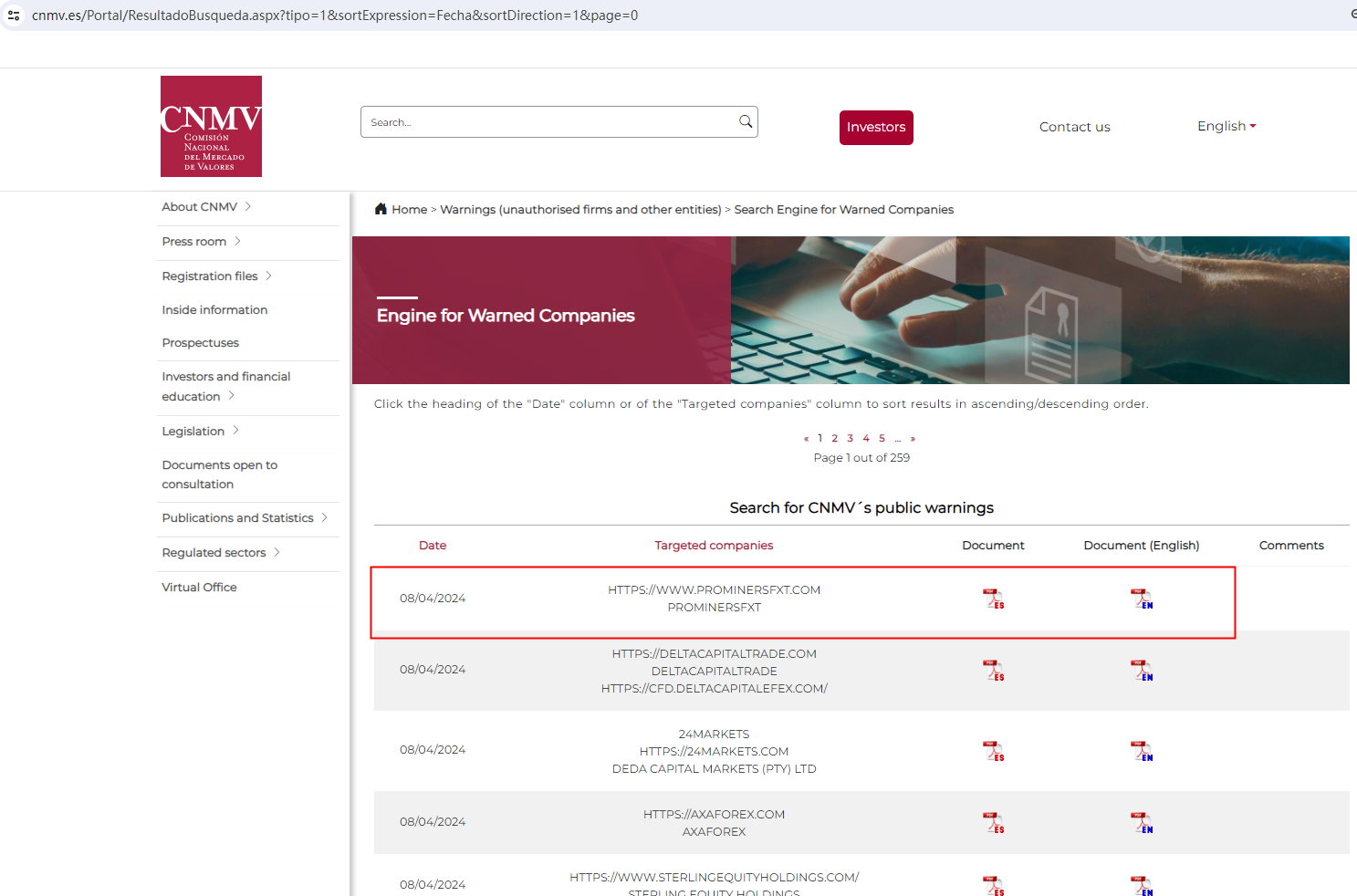 On April 8, 2024, the Comisión Nacional del Mercado de Valores (CNMV) added Prominers Fxt to its warning list for providing investment services without authorization. https://www.cnmv.es/Portal/ResultadoBusqueda.aspx?tipo=1&sortExpression=Fecha&sortDirection=1&page=0