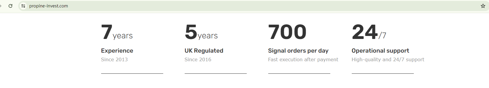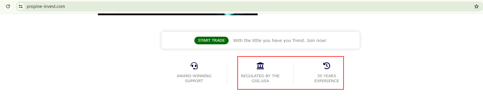 Propine Invest appears to be using a website template that's often linked to fraudulent activities. This template is characterized by its graphic designs and pre-written content, which include claims such as being "regulated by the GSE, USA", having "30 years of experience", and being "trusted for more than 7 years". However, our investigations indicate that these claims lack credibility.
