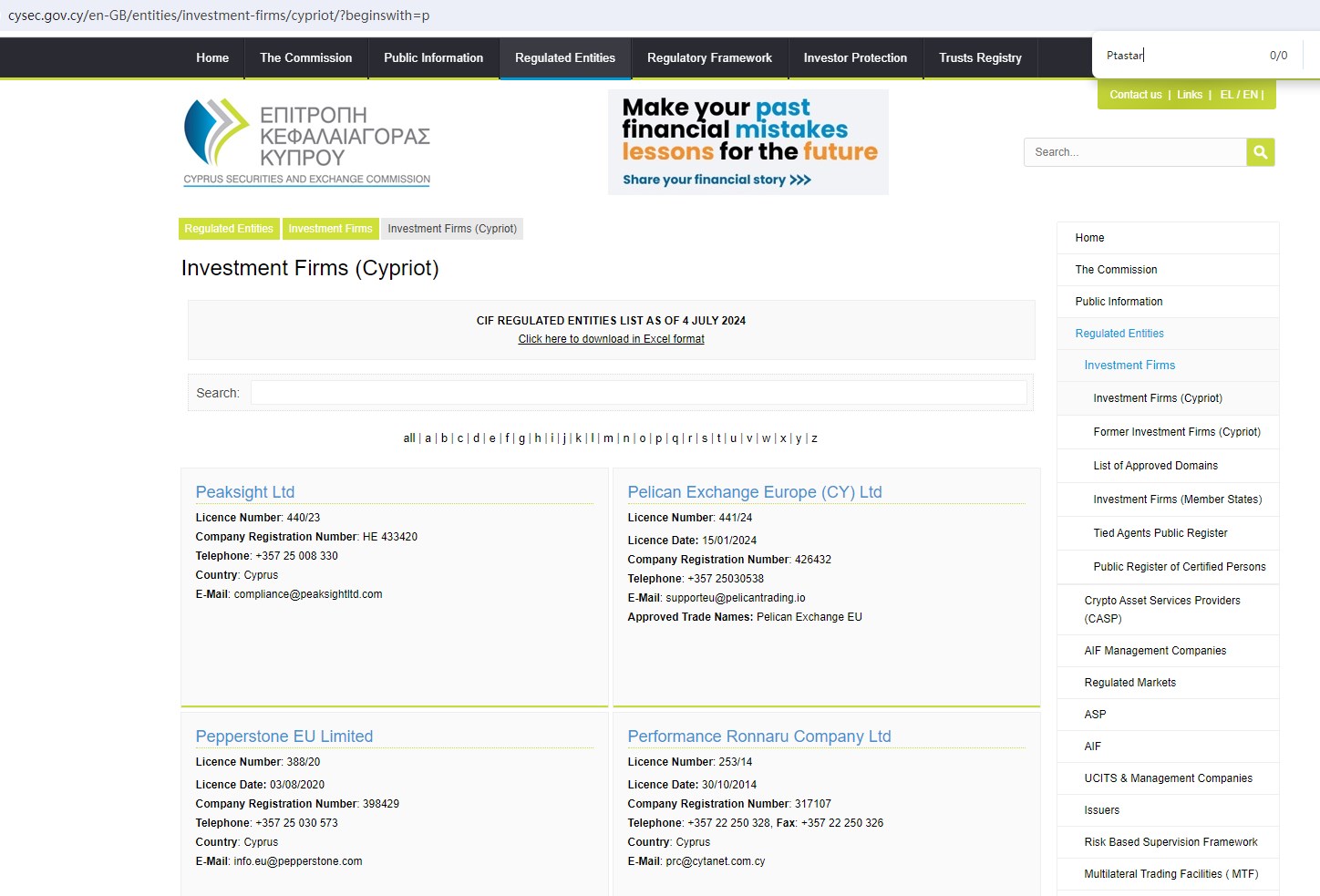 Upon investigation, our search of the ASIC, SCB, CMA, CySEC, FCA, BaFin and DFSA yielded no results. And the SCB issued a warning against PTASTAR MARKETS LIMITED (dnauebf.com & cerionit.com), believing this company might be providing financial services or products without authorisation.