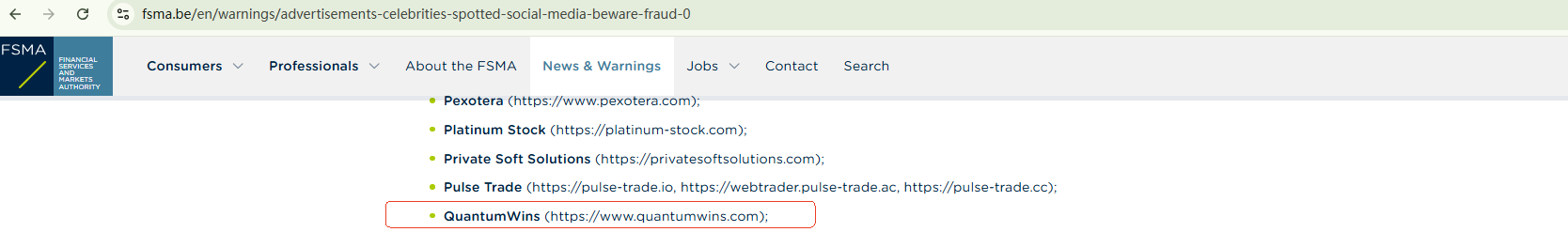 On March 19, 2025, the Belgian Financial Services and Markets Authority (FSMA) added QuantumWins to its warning list, advising against trading with this site. https://www.fsma.be/en/warnings/advertisements-celebrities-spotted-social-media-beware-fraud-0