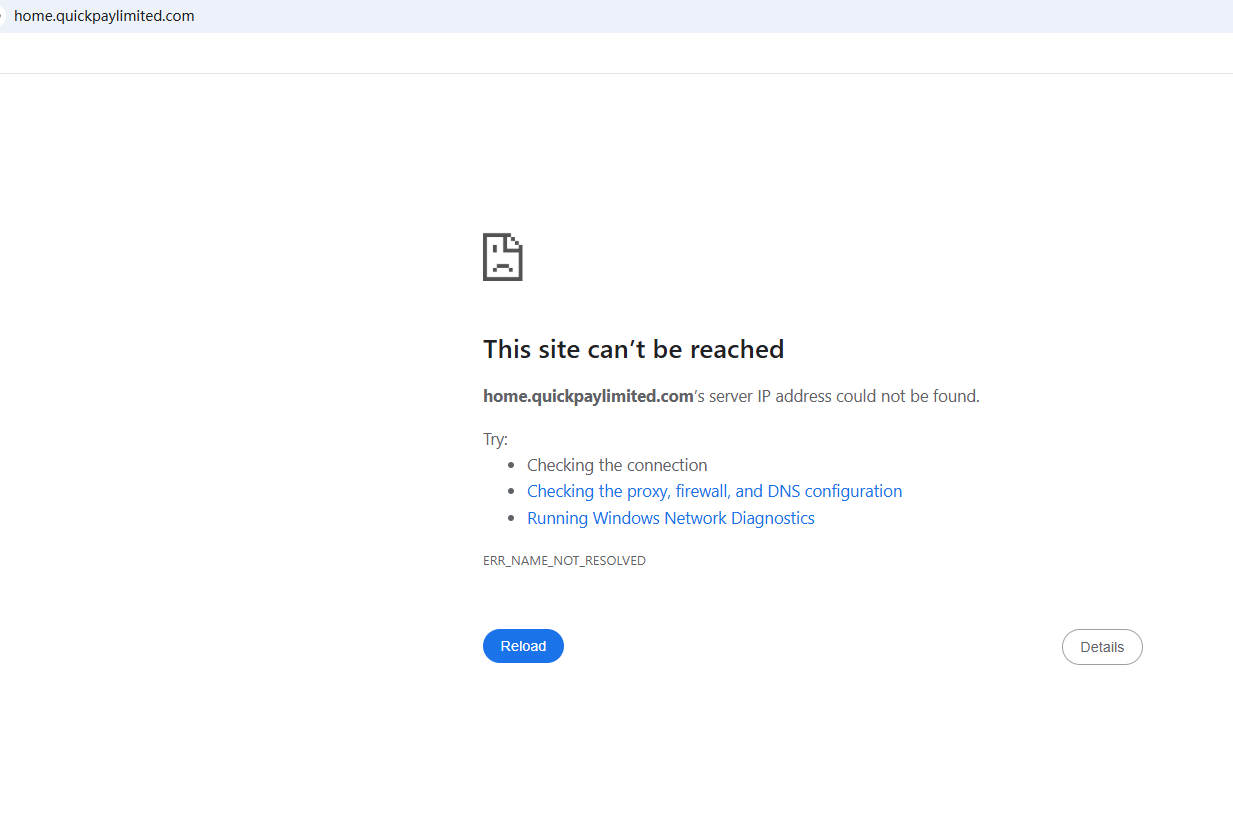 BrokersView found that the domain "https://home.quickpaylimited.com/" is currently inaccessible. This is widely regarded as a significant red flag, as the suspension of a broker's website often points to underlying regulatory or operational issues.