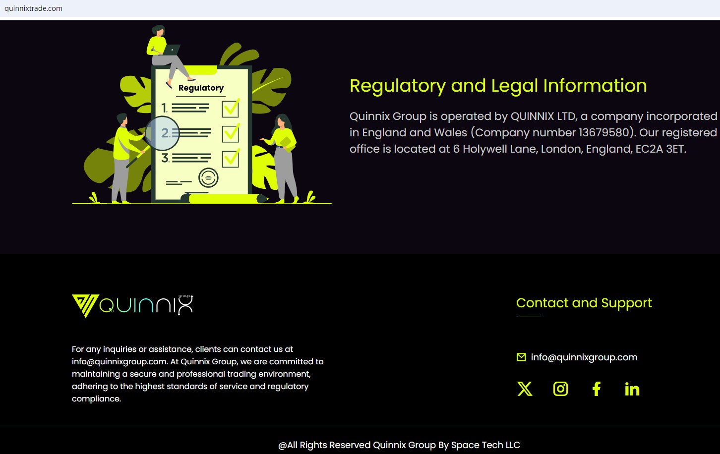 The truth is that Quinnix Group is not regulated by any regulators. Letting it hold or control investors'money is unsafe, and the money can not be protected by any laws.
