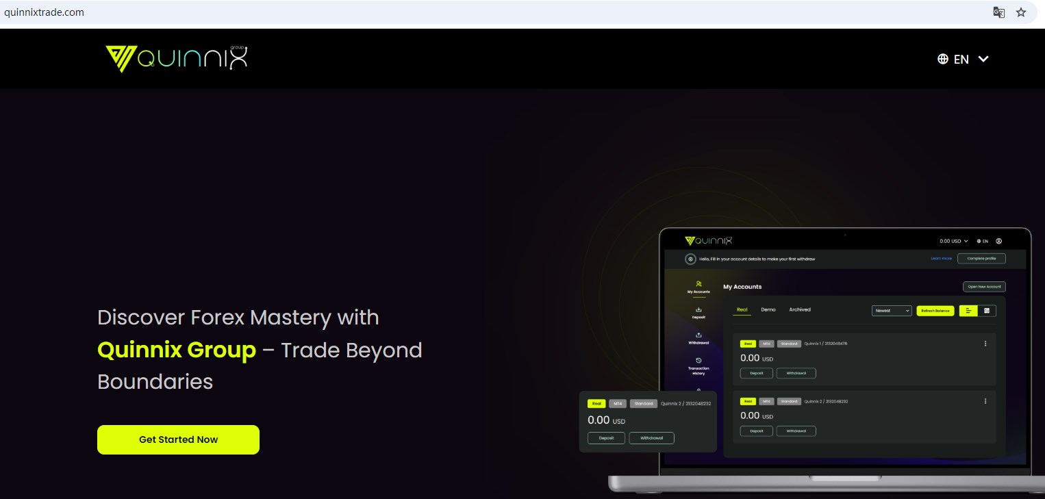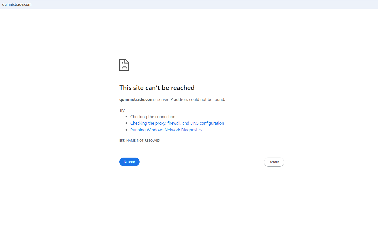 BrokersView found that the domain "quinnixtrade.com" is currently inaccessible. This is widely regarded as a significant red flag, as the suspension of a broker's website often points to underlying regulatory or operational issues.