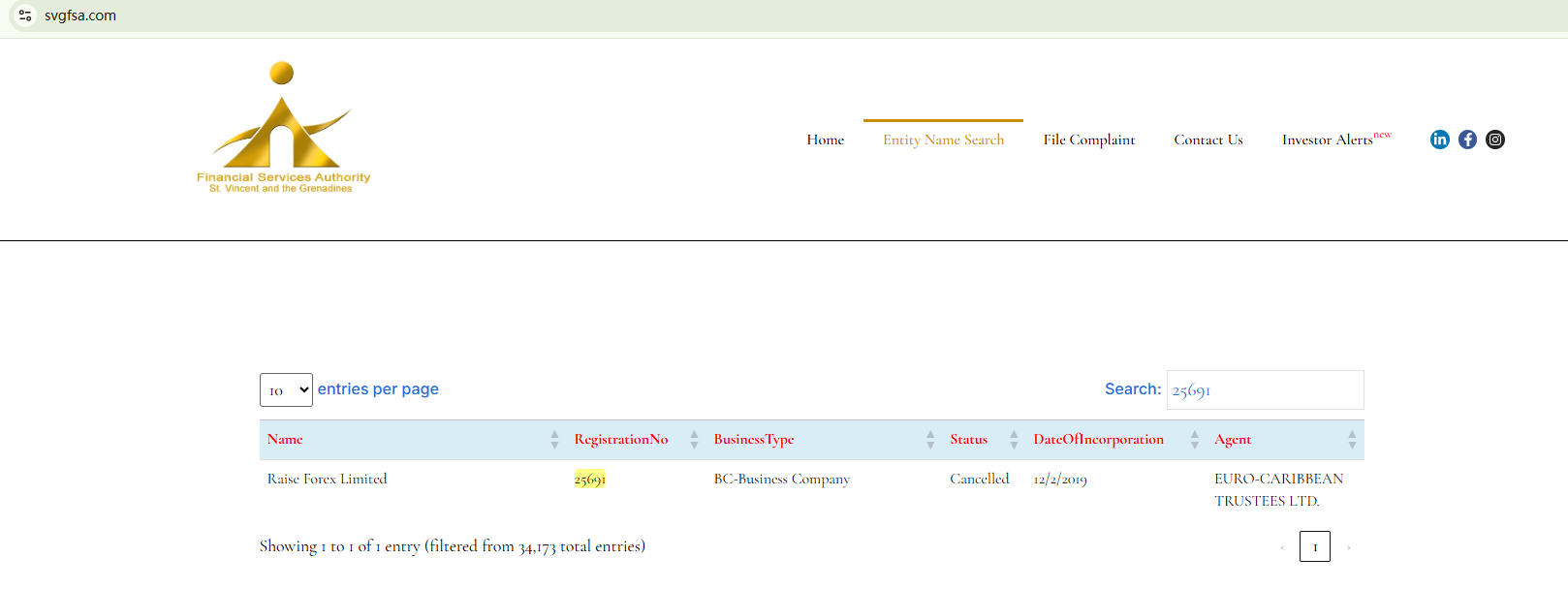 The website of Raiseforex is currently unavailable. The claimed registration with the Financial Services Authority of St. Vincent and The Grenadines (SVG FSA) has been canceled as well. All the signs indicate substantial risks of Raiseforex. Investors should be informed about the development and stay clear of it.