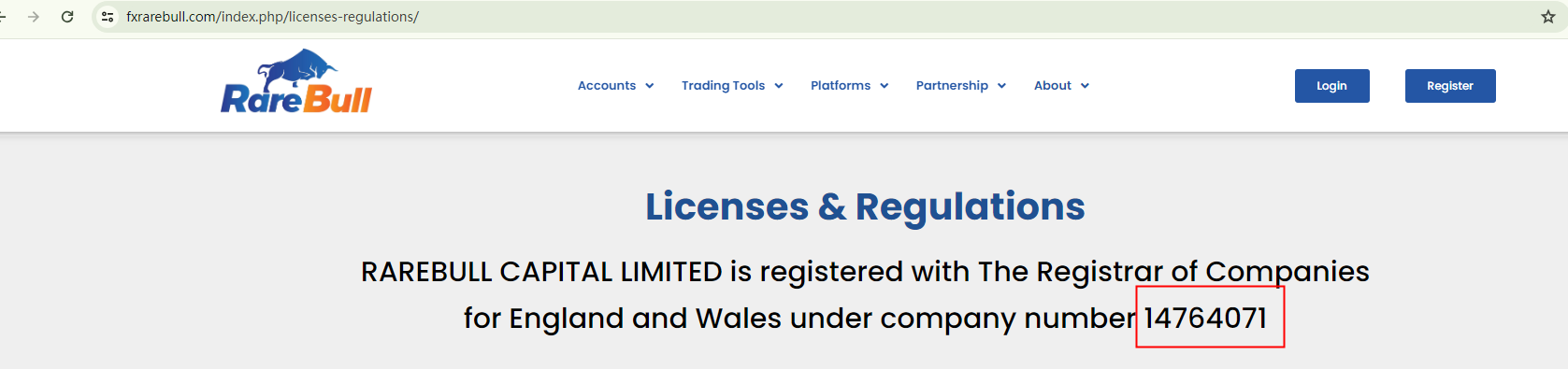 Rarebull presents itself as a regulated broker, claiming to be under the supervision of the Financial Conduct Authority (FCA) and the Australian Securities and Investments Commission (ASIC). Additionally, the broker alleges that it holds a registration number, 14764071, from the Companies House (CH) to validate its legitimacy.