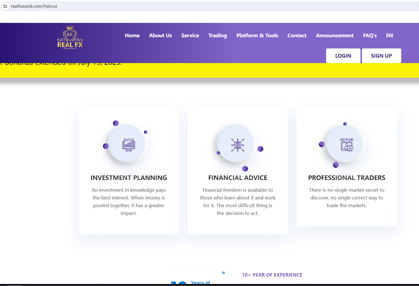 BrokersView found that the domain "https://realfxworld.com/" is currently inaccessible. This is widely regarded as a significant red flag, as the suspension of a broker's website often points to underlying regulatory or operational issues.