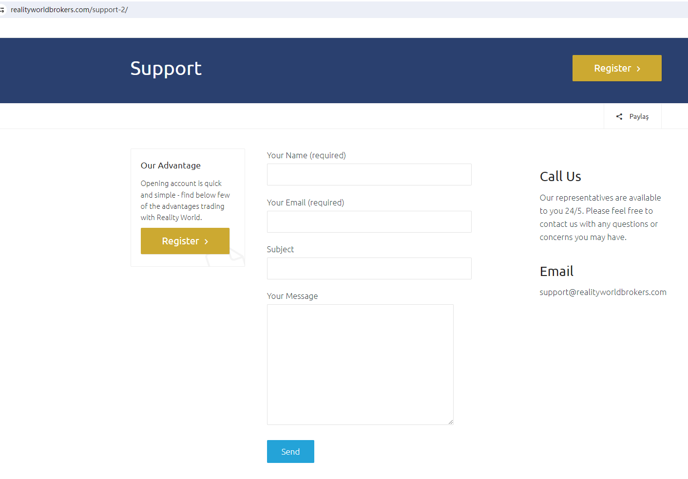 Reality World Brokers claims to be a reliable company without presenting any information about its regulation or contact. The lack of such important information may be a distinct signal of an unlicensed broker, as regulated companies always present their accreditations and licenses in a prominent position. It is a red flag.