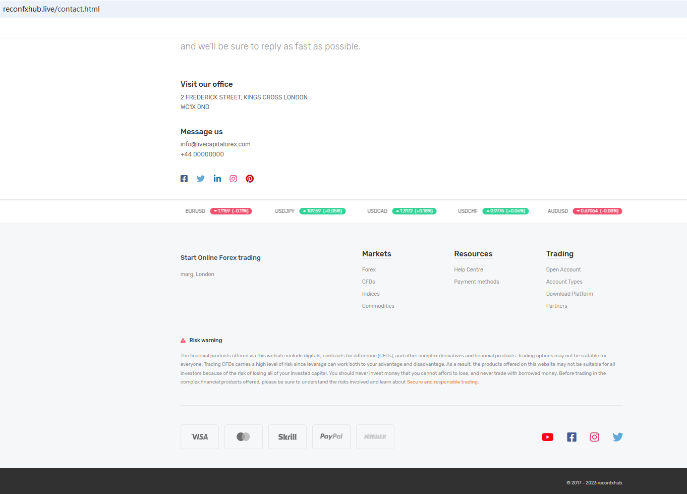 According to its website, it is located in the UK. Upon investigation, we found that the Financial Conduct Authority (FCA) issued a warning against RECONFXHUB, believing this company might be providing financial services or products without proper authorization in the UK.