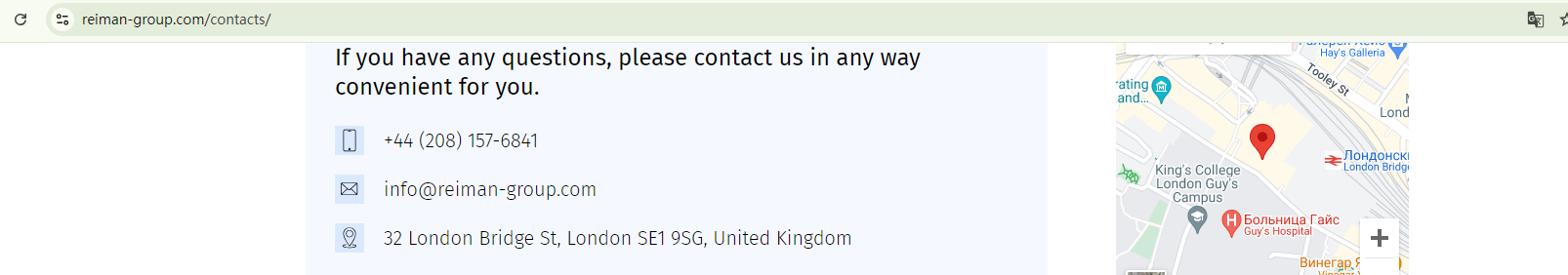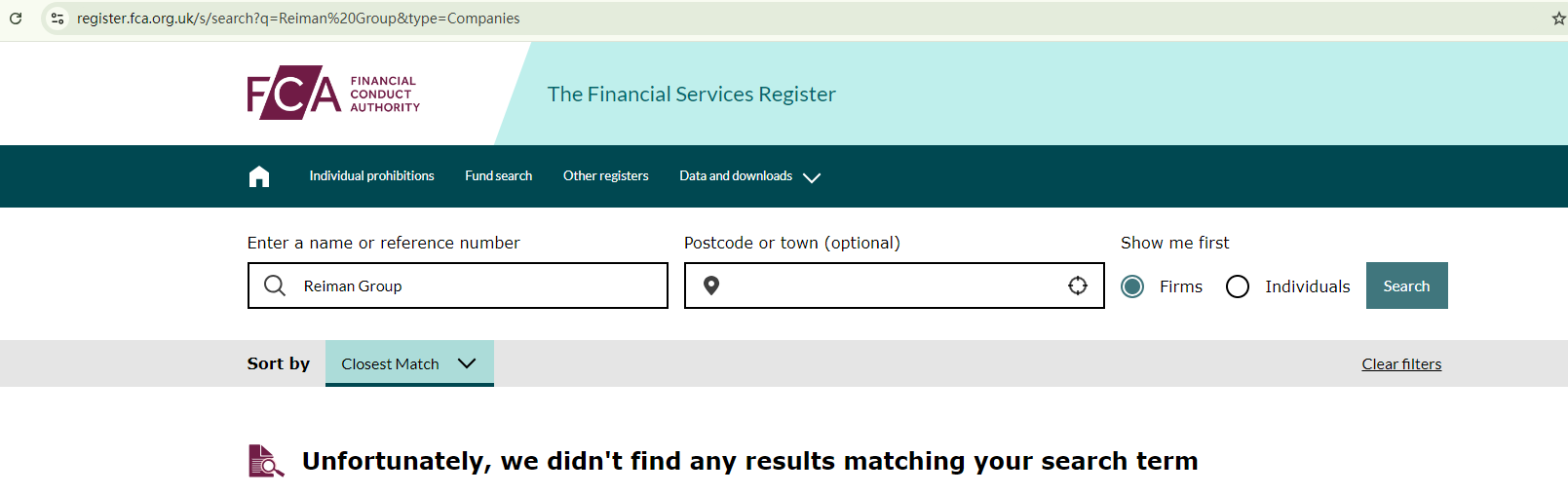 Reiman Group claims to be a time-honored broker. However, it fails to provide any regulatory information to substantiate its legitimacy. Despite claiming to be located in the UK, Reiman Group is not authorized by the Financial Conduct Authority (FCA) as a broker.