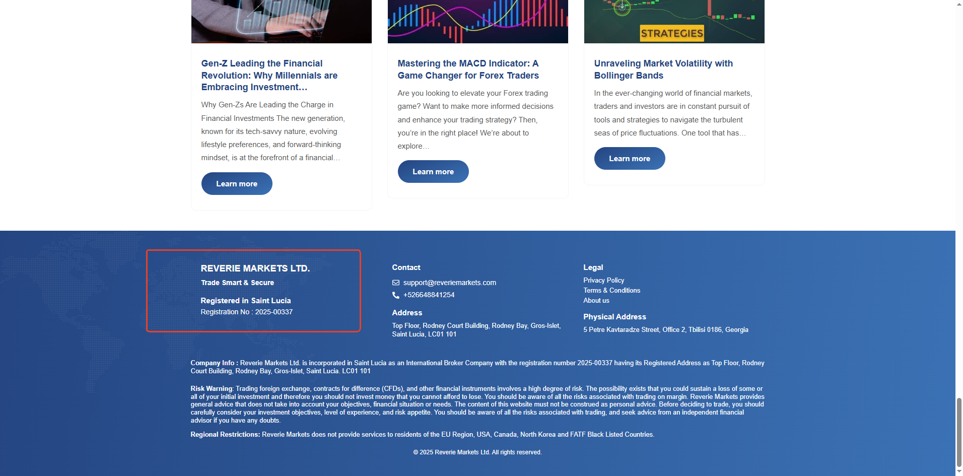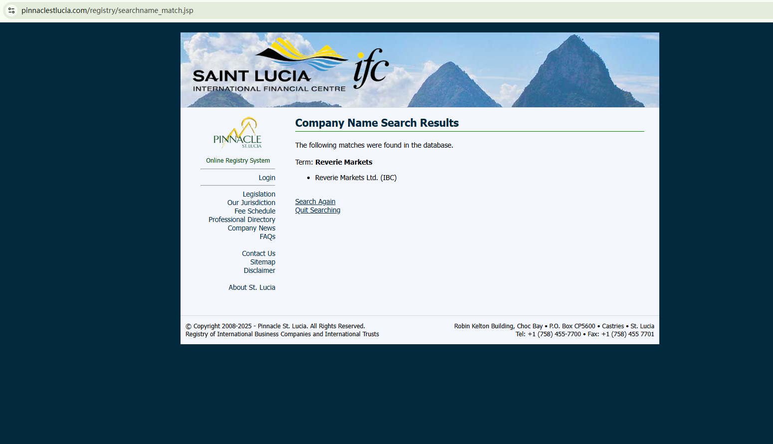 Reverie Markets only presents a registered address in Saint Lucia and a physical office address in Georgia. While Reverie Markets Ltd. is registered with the Saint Lucia International Financial Centre (IFC) as an International Business Company (IBC), it is critical to emphasize that an IBC registration is purely an administrative and corporate registration—it does not constitute regulatory authorization to offer financial services. The Saint Lucia IFC does not regulate forex brokers.