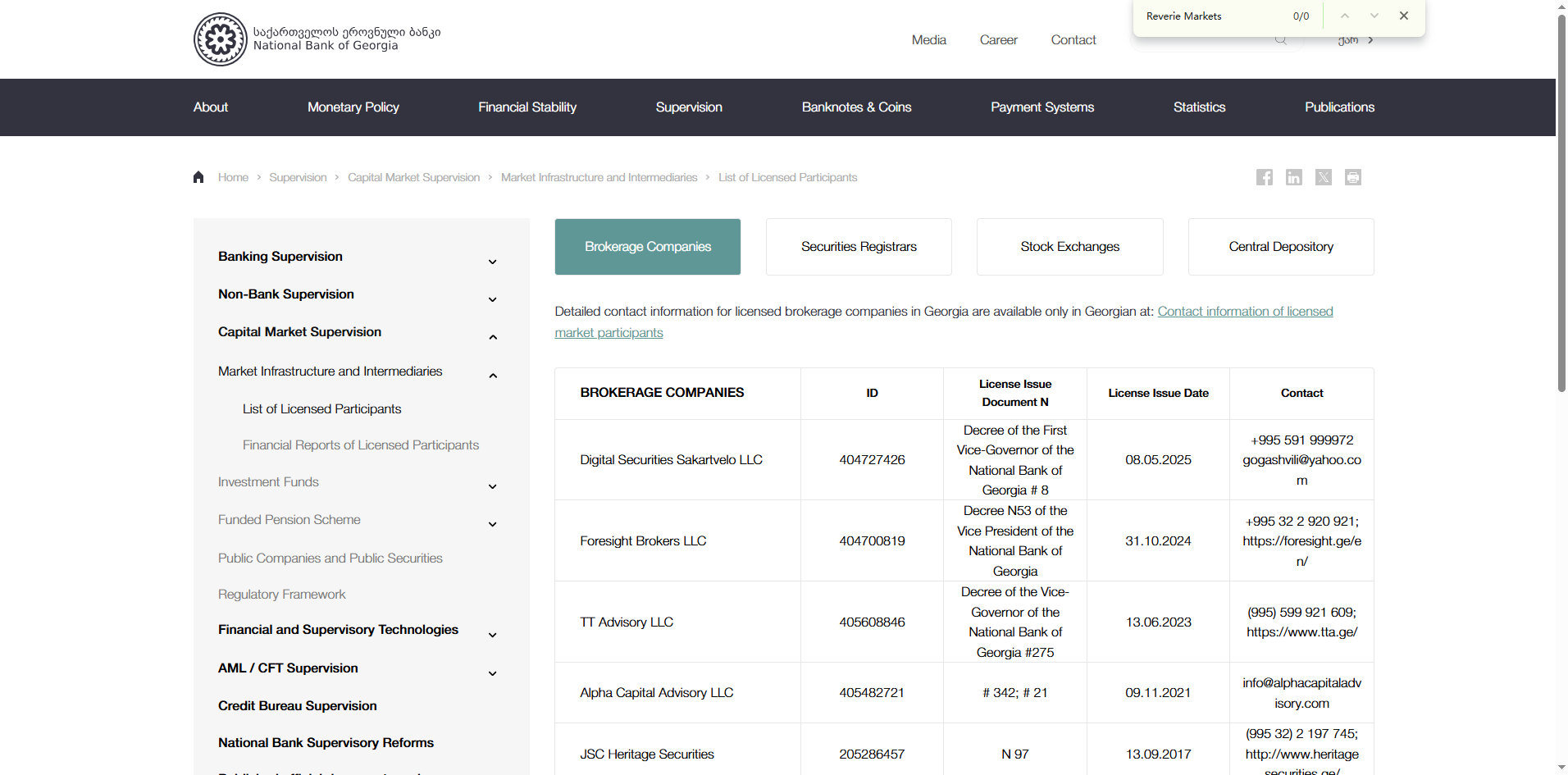 Additionally, we conducted a search of the licensed brokers under The National Bank of Georgia (NBG), and found no record of Reverie Markets holding a valid brokerage license in Georgia. In summary, Reverie Markets is not regulated by any recognized financial authority. Therefore, it is a scam.