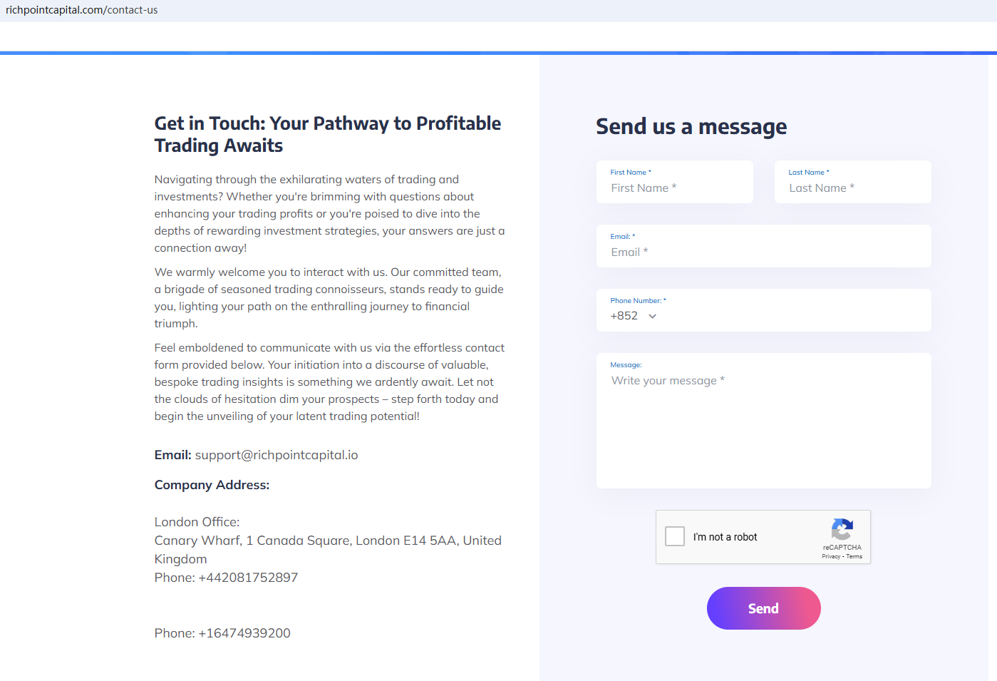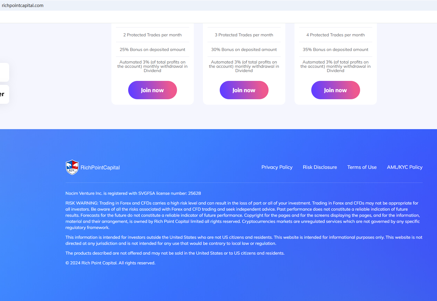 In essence, Rich Point Capital is not regulated by any governing body. Entrusting it with investors' funds is highly risky, as there are no legal protections in place to safeguard the funds.