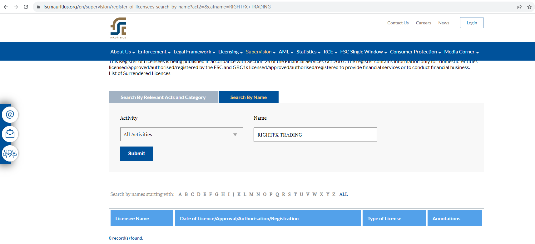 RIGHTFX TRADING claims to be regulated in the Financial Services Commission, Mauritius (FSC), Malaysia, Freedom of Informat, the Financial Commission (FinCom) and Philippines. In these regulators/countries, only FSC and FinCom can regulate forex trading activities. We searched the FSC and FinCom and found no results matching to RIGHTFX TRADING. It is a red flag.