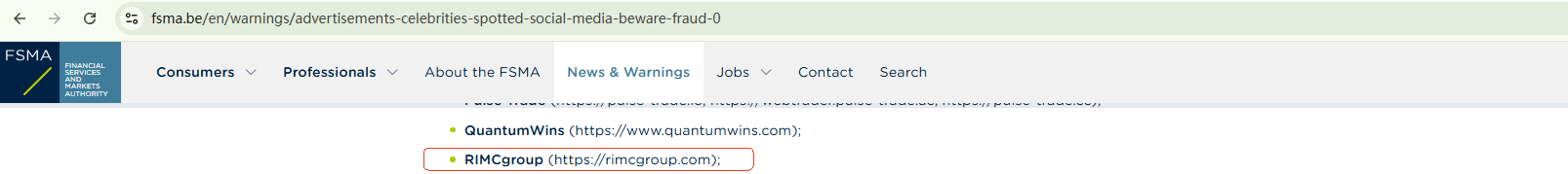 On March 19, 2025, the Belgian Financial Services and Markets Authority (FSMA) adds RIMCgroup to its warning list, advising against responding to the offers made by this site. https://www.fsma.be/en/warnings/advertisements-celebrities-spotted-social-media-beware-fraud-0
