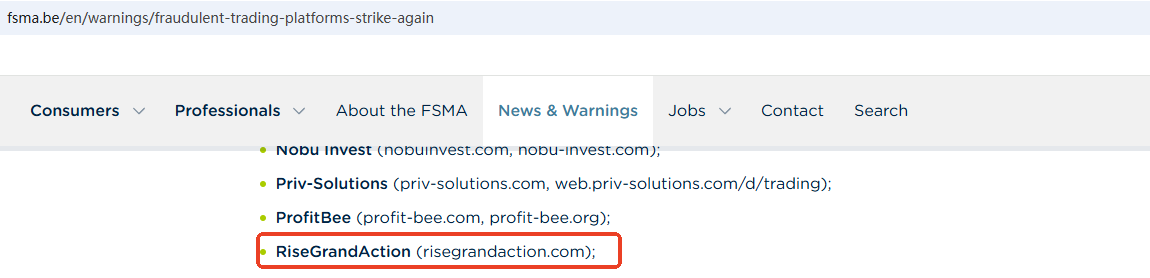 On Oct 14, 2025, the Financial Services and Markets Authority (FSMA) issued a warning about RiseGrandAction for the lack of the required authorization. https://www.fsma.be/en/warnings/fraudulent-trading-platforms-strike-again