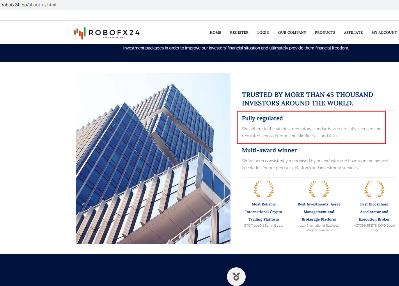 The truth is that ROBOFX24 is not regulated by any regulators. Letting it hold or control investors' money is unsafe, and the money can not be protected by any laws.