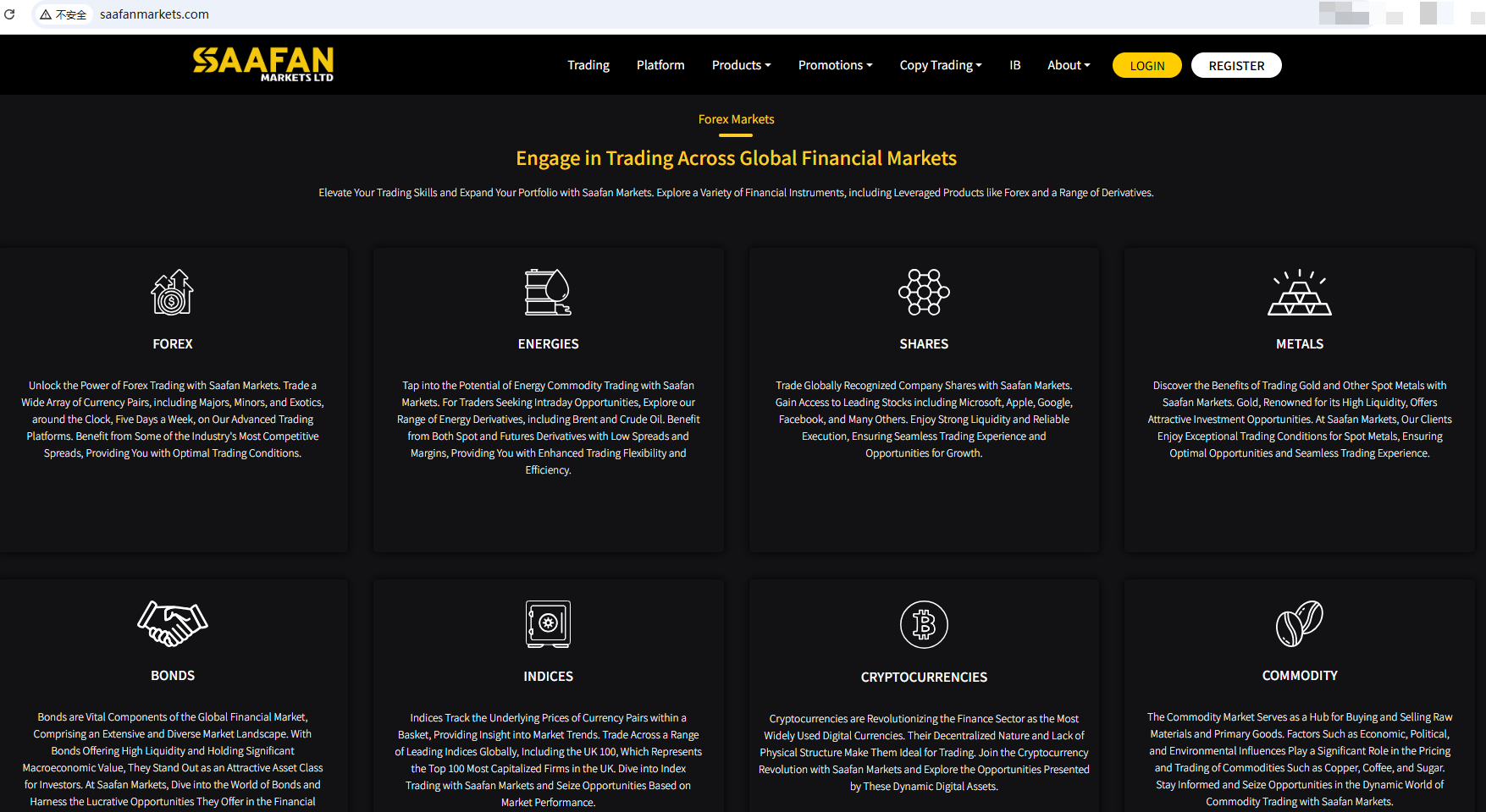 Saafan Markets claims to be a forex brokerage firm registered in Saint Lucia under registration number 2024-00148, offering wide range of financial services to traders, including Forex, Energies, Shares, Metals, Bonds, Indices, Cryptocurrencies, Commodity and more instruments in global markets.