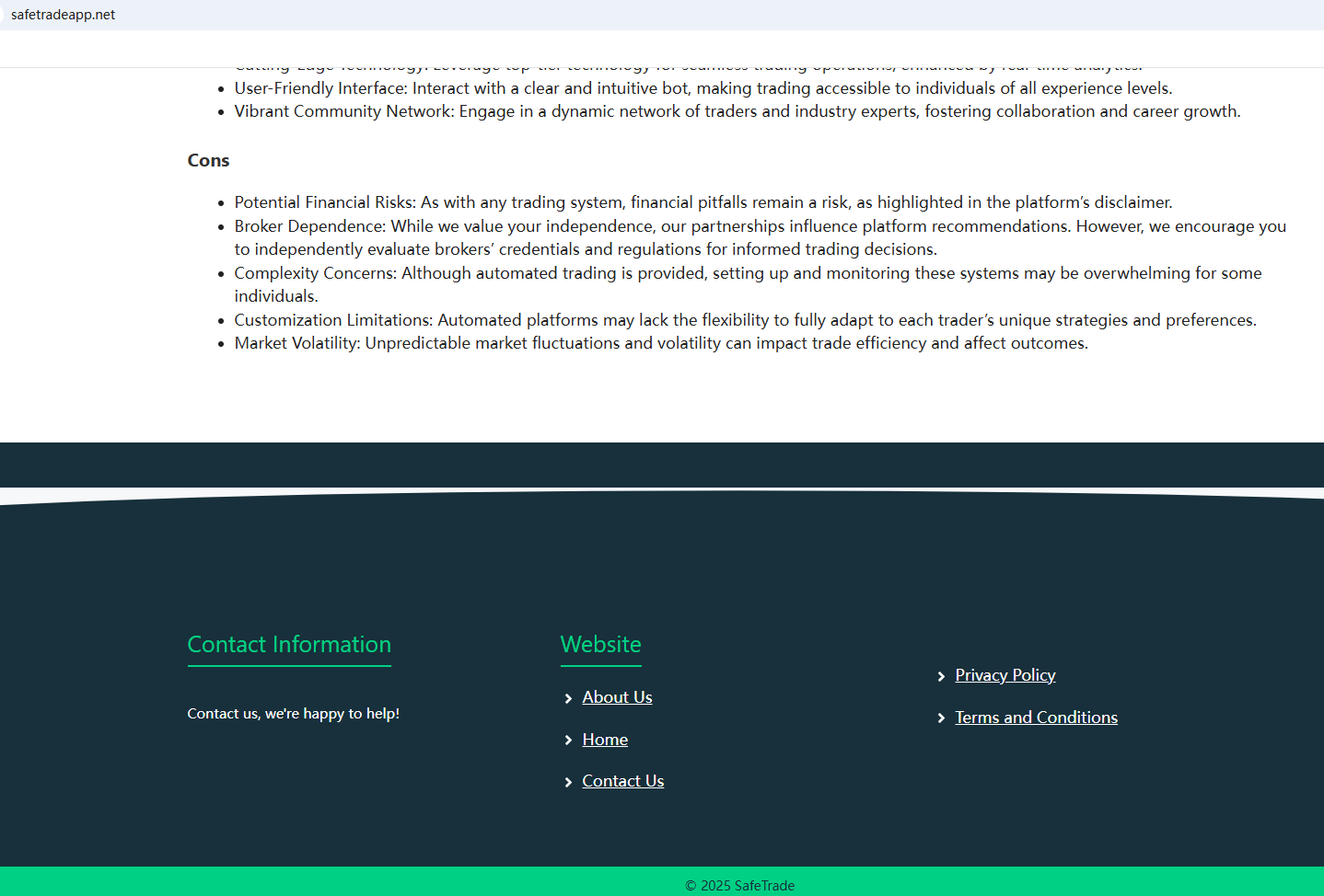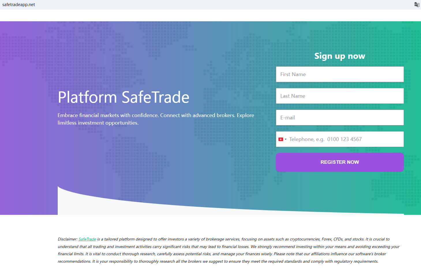In essence, safetradeapp.net is not regulated by any governing body. Entrusting it with investors' funds is highly risky, as there are no legal protections in place to safeguard the funds. safetradeapp.net appears to be a scam.